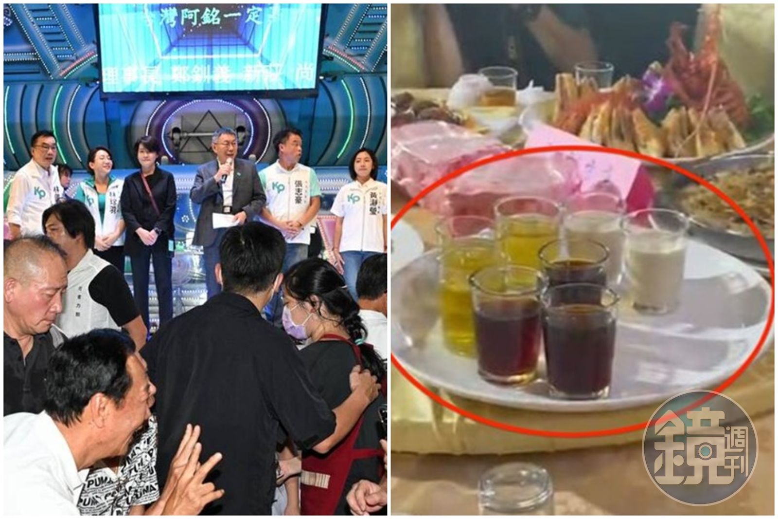 而擺在桌上的咖啡、奶茶跟果汁,柯文哲看都沒看,主桌椅子更是沒坐過,只留下柯文哲台上致詞、郭台銘台下拍照,背板LED螢幕寫著「台灣阿銘一定贏」的奇特畫面,讓他不禁想問「這是要合作的樣子嗎?」