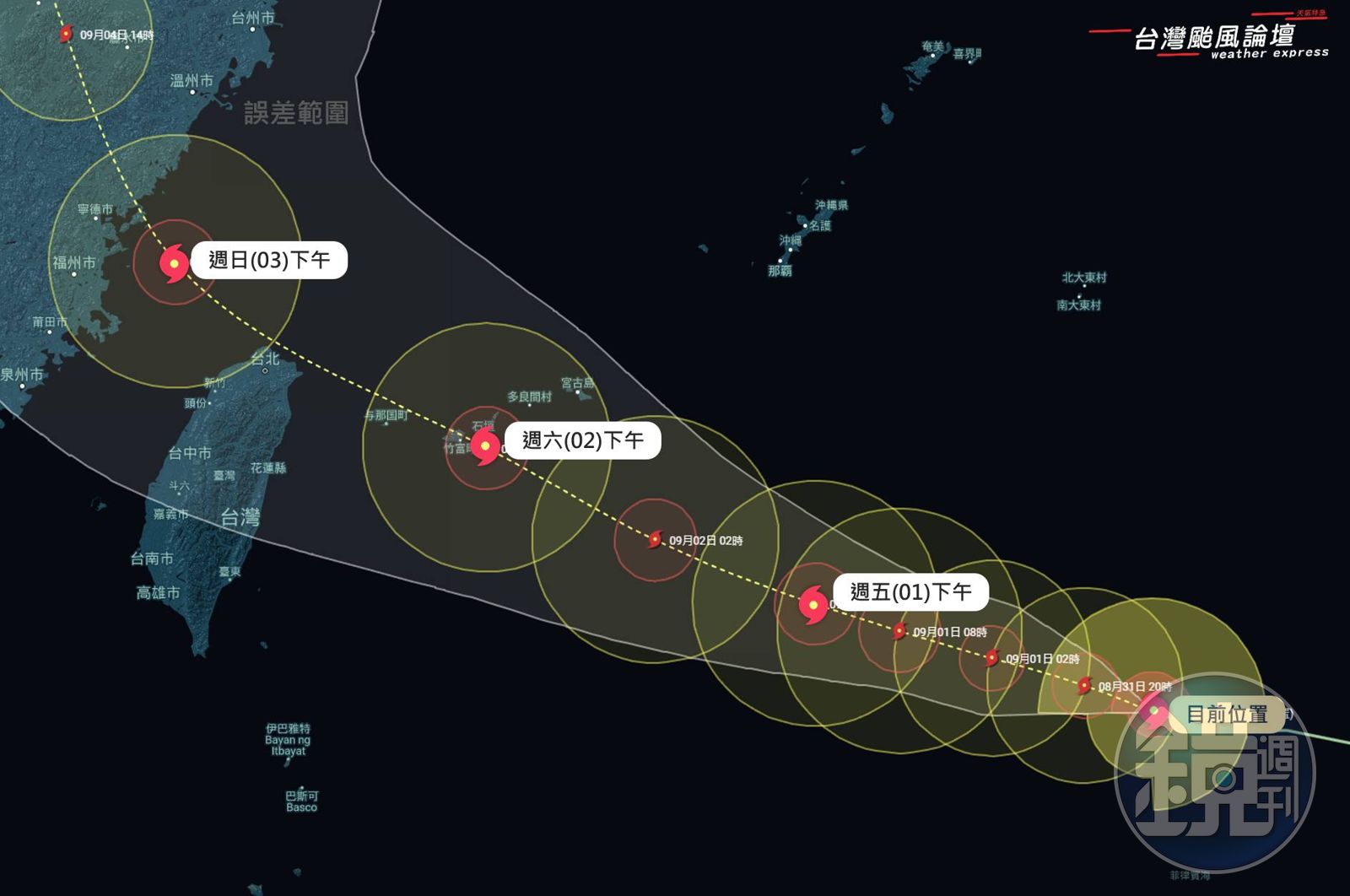 今年第11號颱風海葵,移動速度非常快,氣象局指出,明上半天海葵可能增強為中度颱風,而最新的預測路徑圖顯示,海葵未來路徑幾乎已快擦到台灣,而週末2天風雨更為明顯,北部、中部山區、宜花都會有豪雨等級降雨。