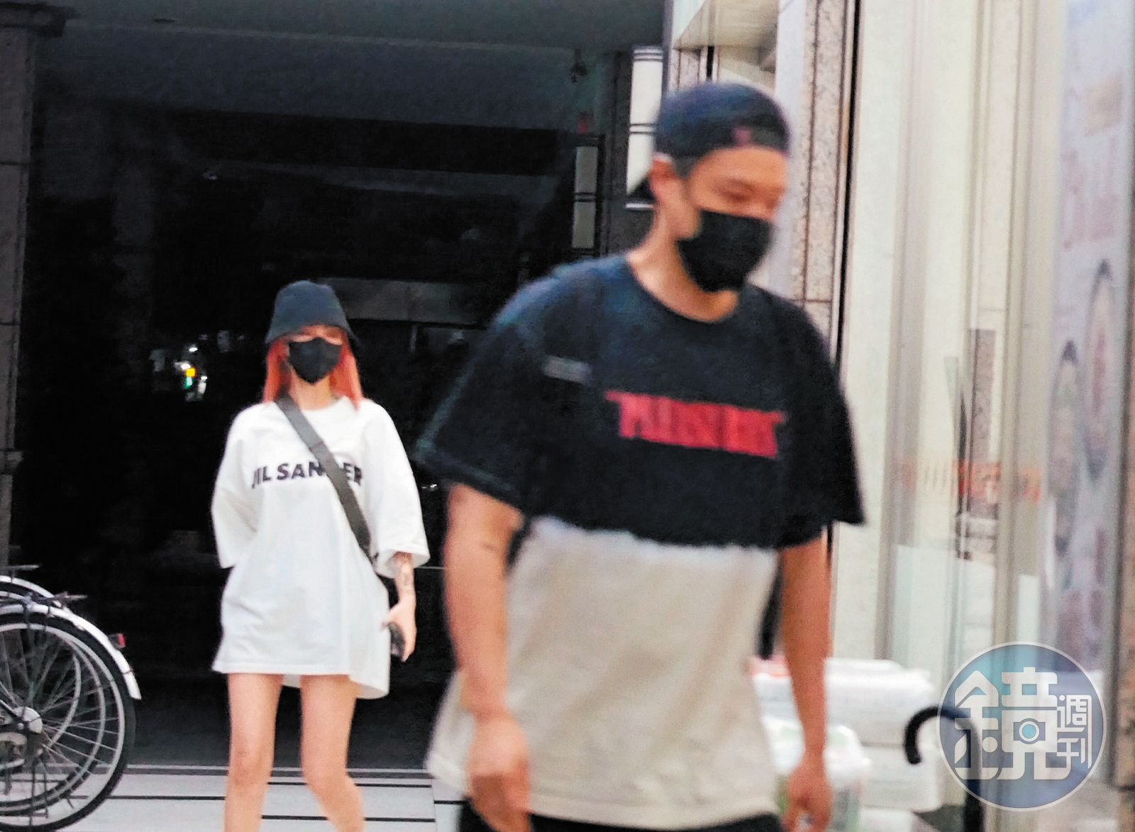 周湯豪與鄭雲燦出遊時總愛情侶裝扮,4月他們穿著類似的棒球外套看車展、遊車河;8月26日晚間11點多,兩人從台北東區高檔火鍋店吃完飯出來,則是一身黑帽、黑口罩、T恤、短褲、球鞋套裝,步行經過超商後,疑似發現本刊,隨即又折返進超商,沒過多久又出來躲在騎樓柱子後竊竊私語,像是在討論下一步的行動。