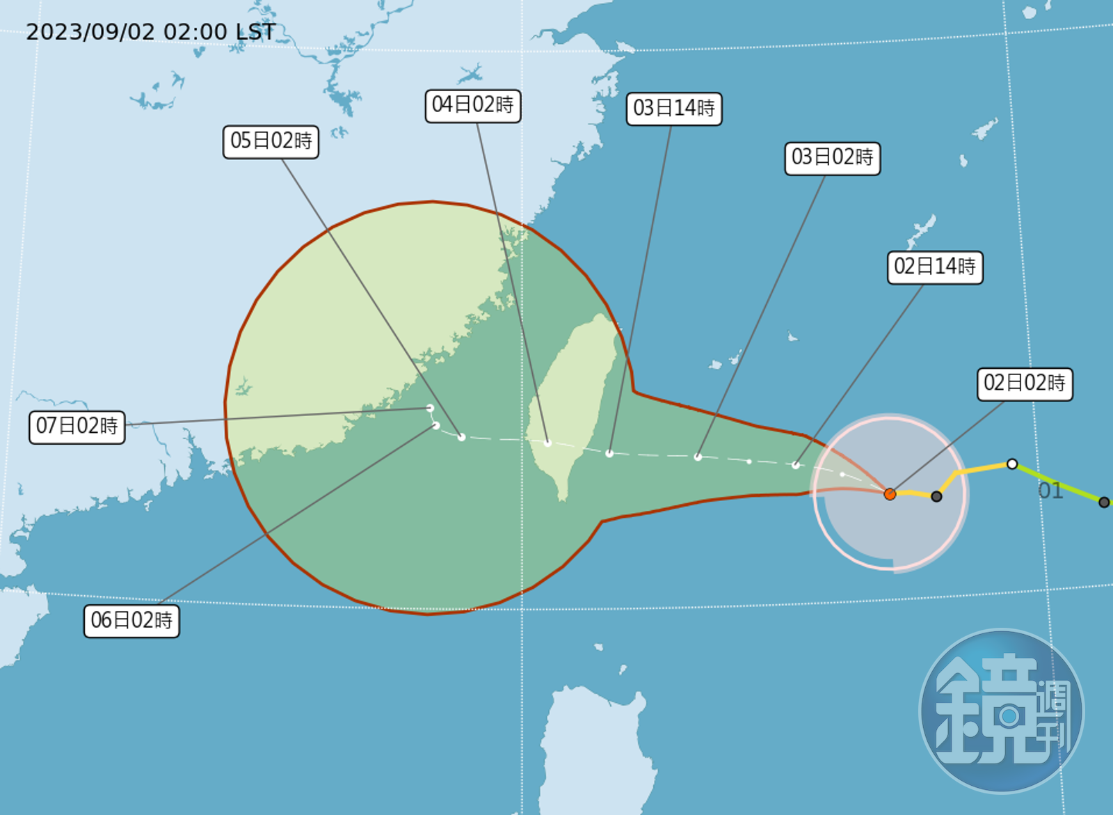 氣象局也發出未來降雨趨勢預測,週日(3日)颱風侵襲台灣,全台有雨,東半部降雨量「紫爆」;下週一至週三(4日至6日)受颱風及外圍環流影響,南部及中部山區將迎來豪雨,下週四、五(7日至8日)受低壓帶影響,全台仍有雨。