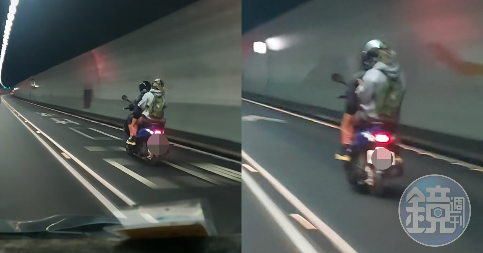 一名網友昨日在臉書社團「宜蘭知識+」分享一段影片,畫面中有台雙載機車馳騁在隧道裡,原PO驚呼第一次在雪隧裡遇到機車,騎士還單手騎車,並透露是在石碇休息區紅斑馬開始看到他們的,目前已經下高速公路了。