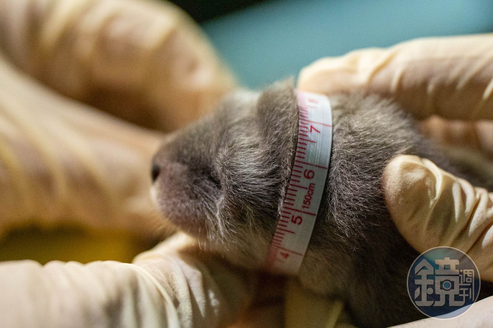 在「金萌」育幼初期,保育員盡量減少對牠們的干擾,除了放食物等必要照養操作外,盡可能不接近巢箱。像歐亞水獺這類食肉目動物的母獸,在哺乳育幼期往往都更為敏感,過多的人為干擾很有可能影響到牠們育幼的意願,產生棄巢的行為。因此,保育員和獸醫們遲至16天後才趁「金萌」離開巢箱出去放風游泳的空檔,快速的檢查兩隻未開眼的水獺寶寶,確認牠們的活力、測量體長體重,以及近距離從外觀上確認性別,為兩隻活力充沛的雌性個體。寶寶們目前跟「金萌」都住在動物園不對外開放的保育研究中心,希望牠們平安健康的成長。