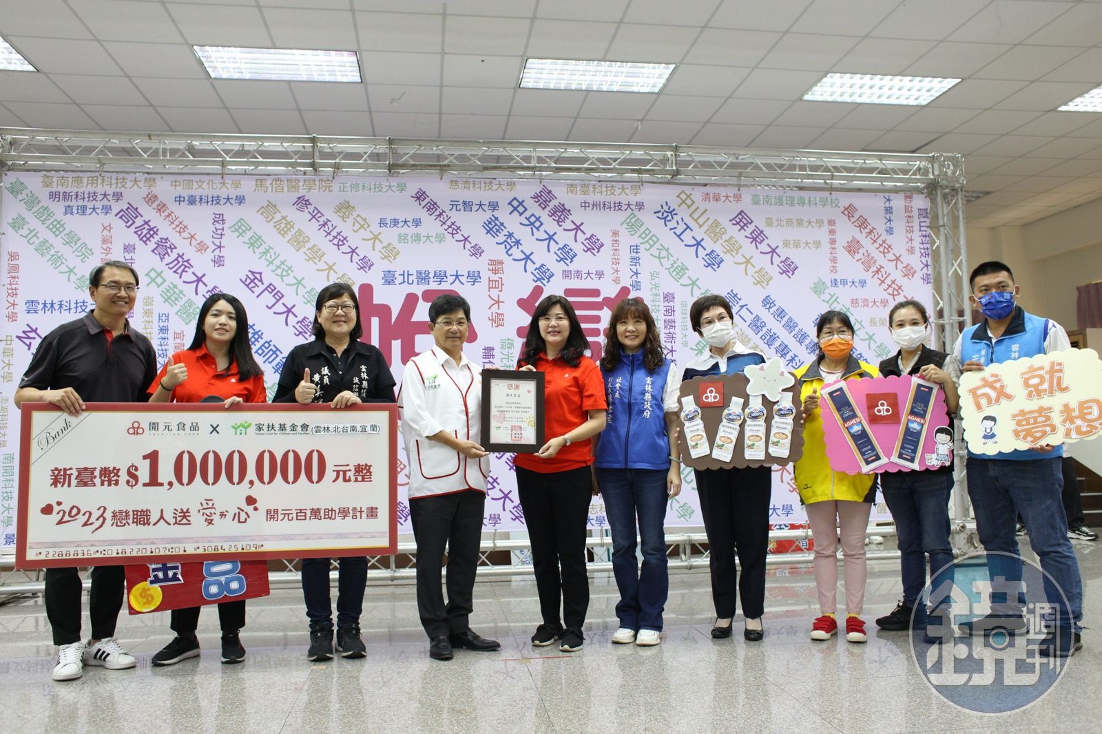 開元食品「戀職人送愛心 開元百萬助學計畫」獎助學金頒發儀式,今年9月2日移師雲林,結合當地家扶中心一同舉行獎助學金頒發典禮。開元食品長期關注弱勢孩童的營養與教育,今年百萬助學獎金幫助了雲林、北台南、宜蘭弱勢兒少,價值百萬的戀職人愛心鮮奶亦將於年底配送全台家扶中心,實際參與給予行動支持。家扶基金會指出,弱勢兒少教育資源的缺乏,非常需要獲得大眾的關注。