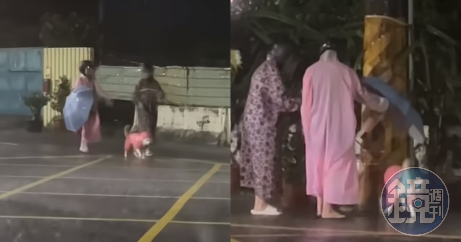 網紅柴犬「Taki」的飼主,3日在臉書粉專「I AM 柴犬 TAKI」分享一段47秒影片,在狂風暴雨的夜晚,大馬路上連台車都沒有,但有2人頭戴安全帽、身穿連身雨衣,牽著一隻穿雨衣的狗狗蹓躂,狗狗也找了喜歡的盆栽、電線桿解放。