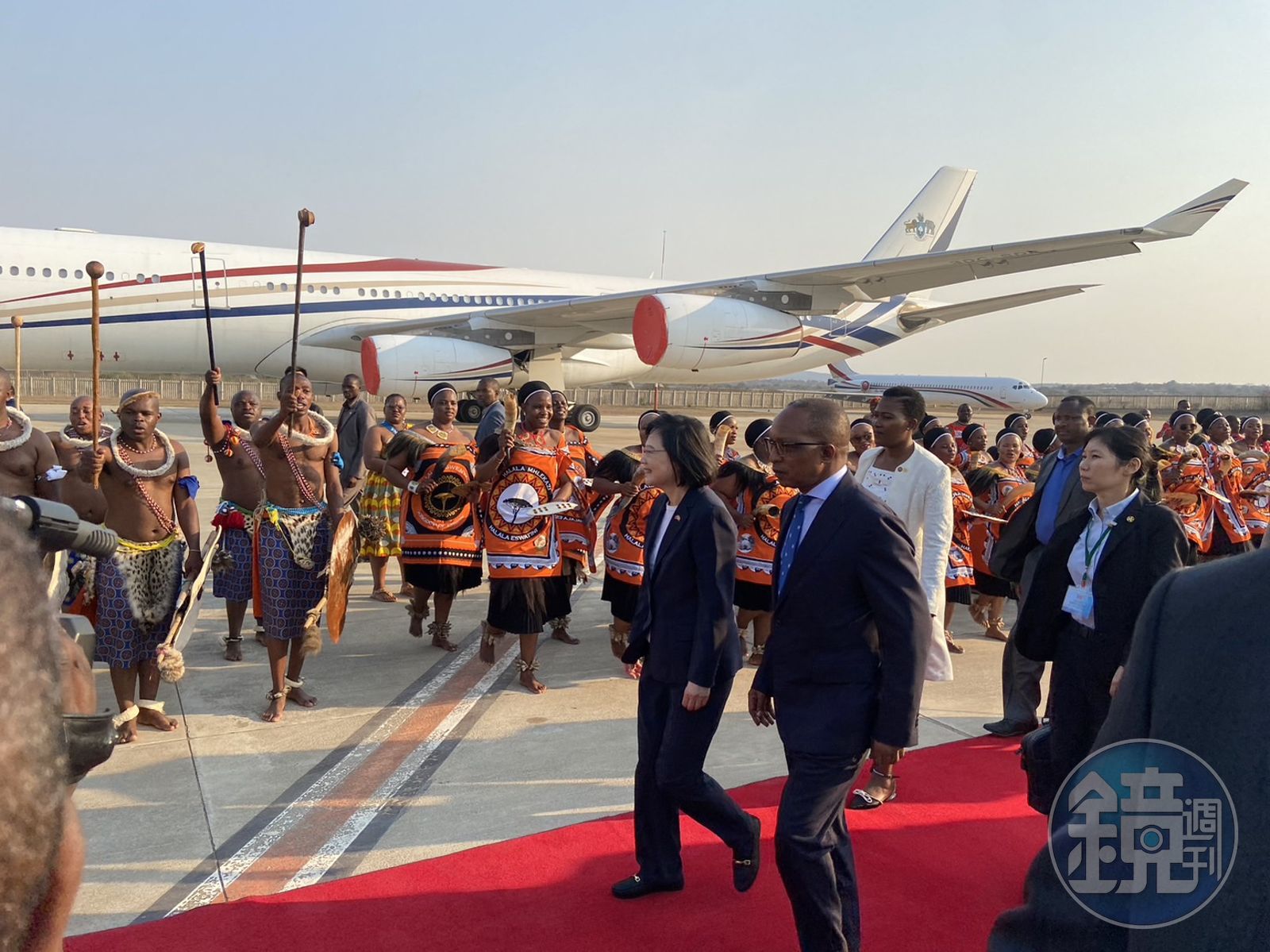 蔡英文抵達史瓦帝尼機場,接受非洲僑胞歡迎。
