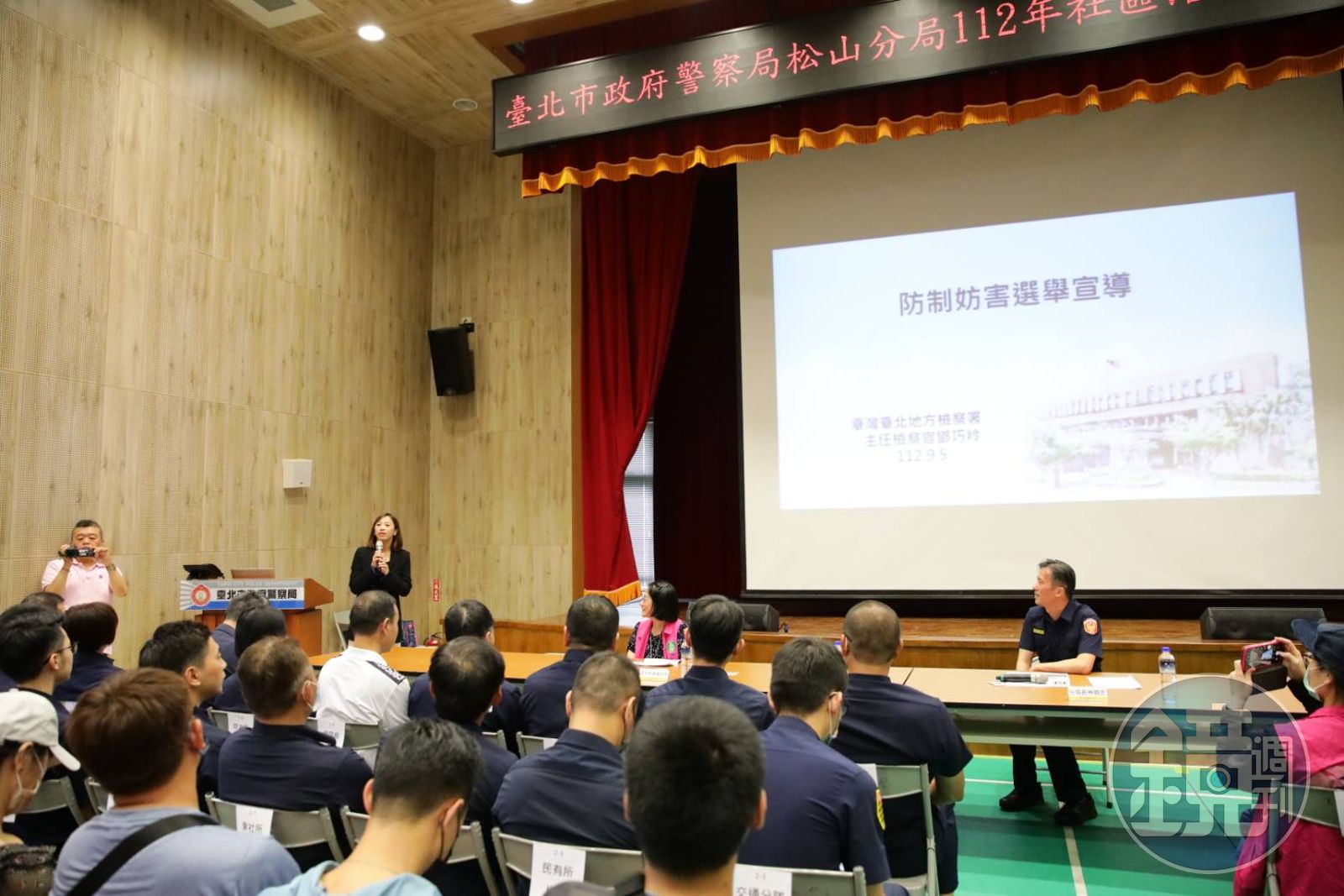 松山分局指出,會中邀請轄內民意代表、里鄰長、各級學校、松山少輔組、金融機構及轄區居民百餘人參與,場面熱鬧盛大,育達高中表演藝術科學生以動感熱舞開場,展現年輕活力,為會議拉開序幕。