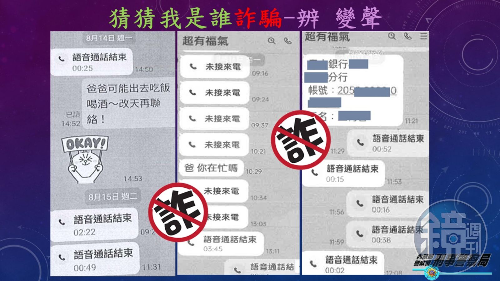 另隨著科技的進步,利用AI深偽(Deepfake)變聲及換臉技術,可以製造出仿真度極高的虛假影像和音訊,很容易讓民眾誤以為偽冒者是被害者本人、親友或名人,引發社會治安的隱憂與製造假訊息,民眾如與熟人通話察覺有異,請務必提高警覺,千萬不要因為聲音、影像逼真就誤認為話筒的那端是您以為的熟人而受騙上當,類似的詐騙的手法在刑事警察局165反詐騙官方網站及165反詐騙LINE上都有介紹,有任何疑問歡迎撥打24小時165反詐騙諮詢專線查詢。