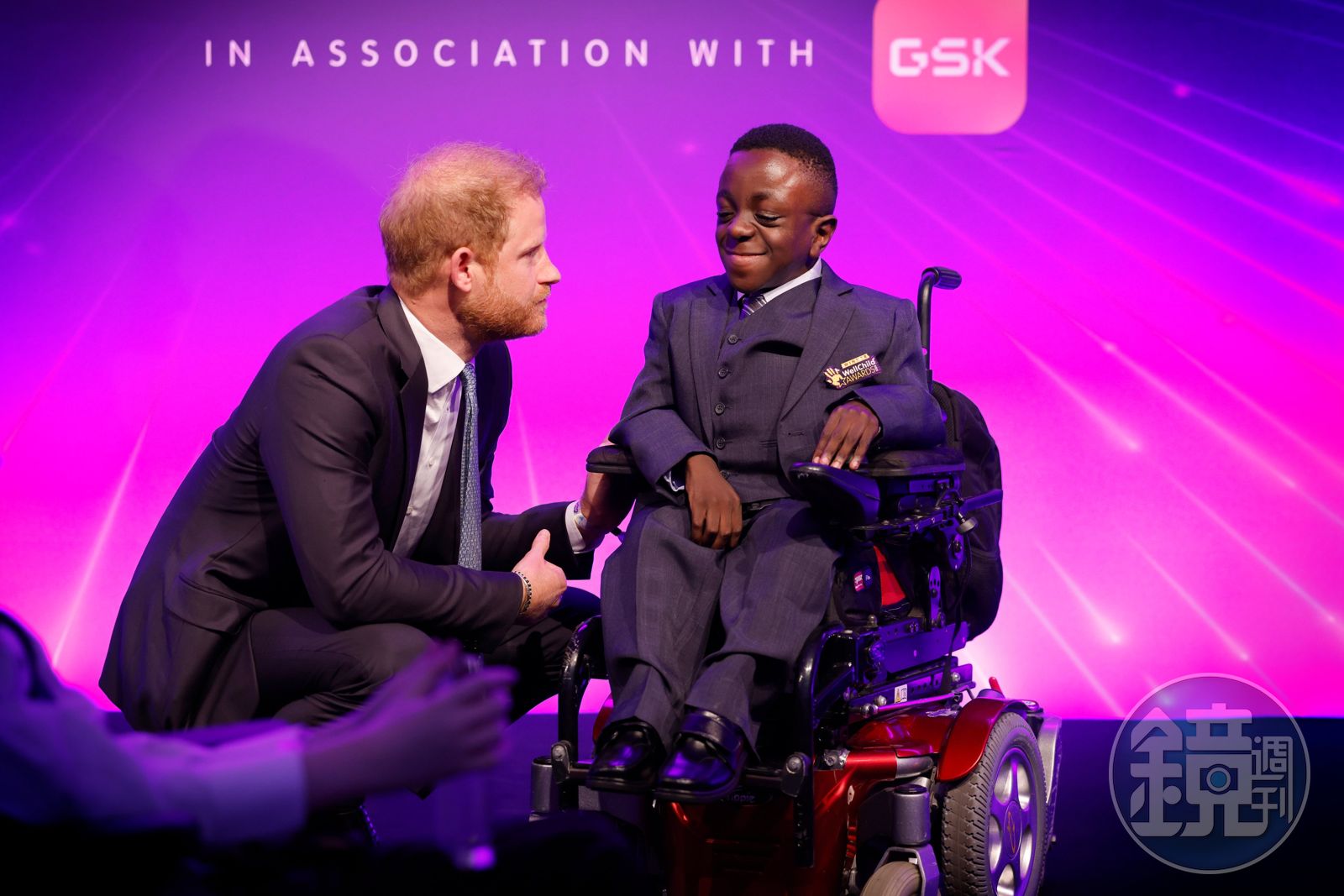 此外,哈利也與獲獎孩子們互動,其中,年僅7歲的波比(Poppy)獲得「關愛獎」,她全天候照顧17歲罹患癲癇症和高胰島素血症的姊姊佩(Paige),儘管波比錯過同齡女孩的玩樂時間,但她無怨無悔、從不抱怨,甚至為負責臨終關懷的醫院募資。當她見到哈利王子時,還開心跳了一段舞,穿水藍色小禮服像個小公主,也不得不說哈利對孩子們相當有一套。