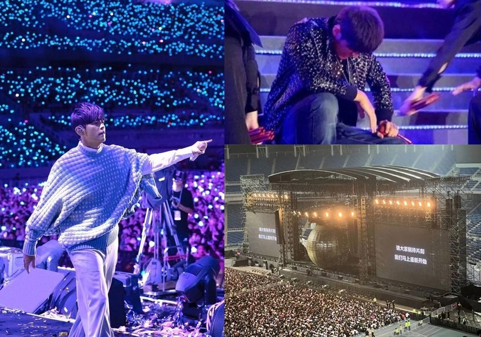 為何有此聲明?一切則因對岸社群網站瘋傳周杰倫的天津演唱會才開始沒多久,舞台上的大型旋轉鐵球突然故障停止轉動,他因此悶到嘔吐,還不慎摔傷腿,最後將開場的〈半獸人〉〈本草綱目〉等歌取消改唱〈說好不哭〉。