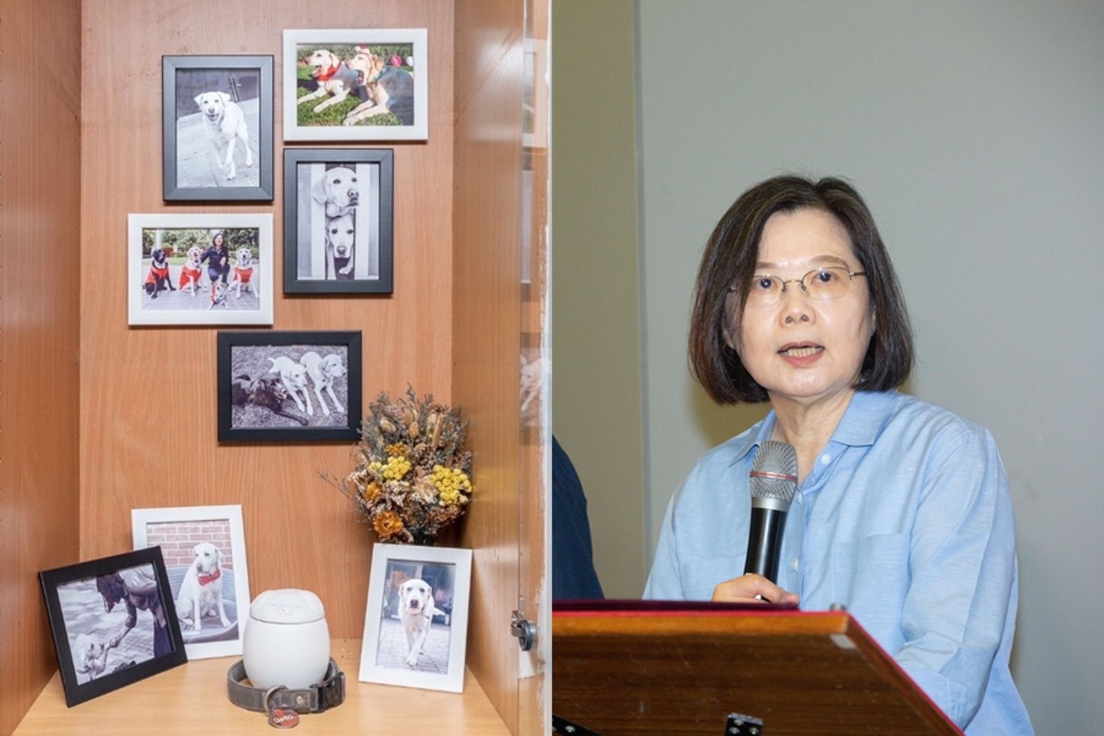 蔡英文下午在臉書貼文表示,她想藉這個機會和大家說,Bella前陣子在睡夢中安詳離開了。她說,2016年她從惠光導盲犬學校領養3隻退役犬Bella、Bunny和Maru;每當官邸有訪客,她常向客人介紹她最可愛的狗家人。