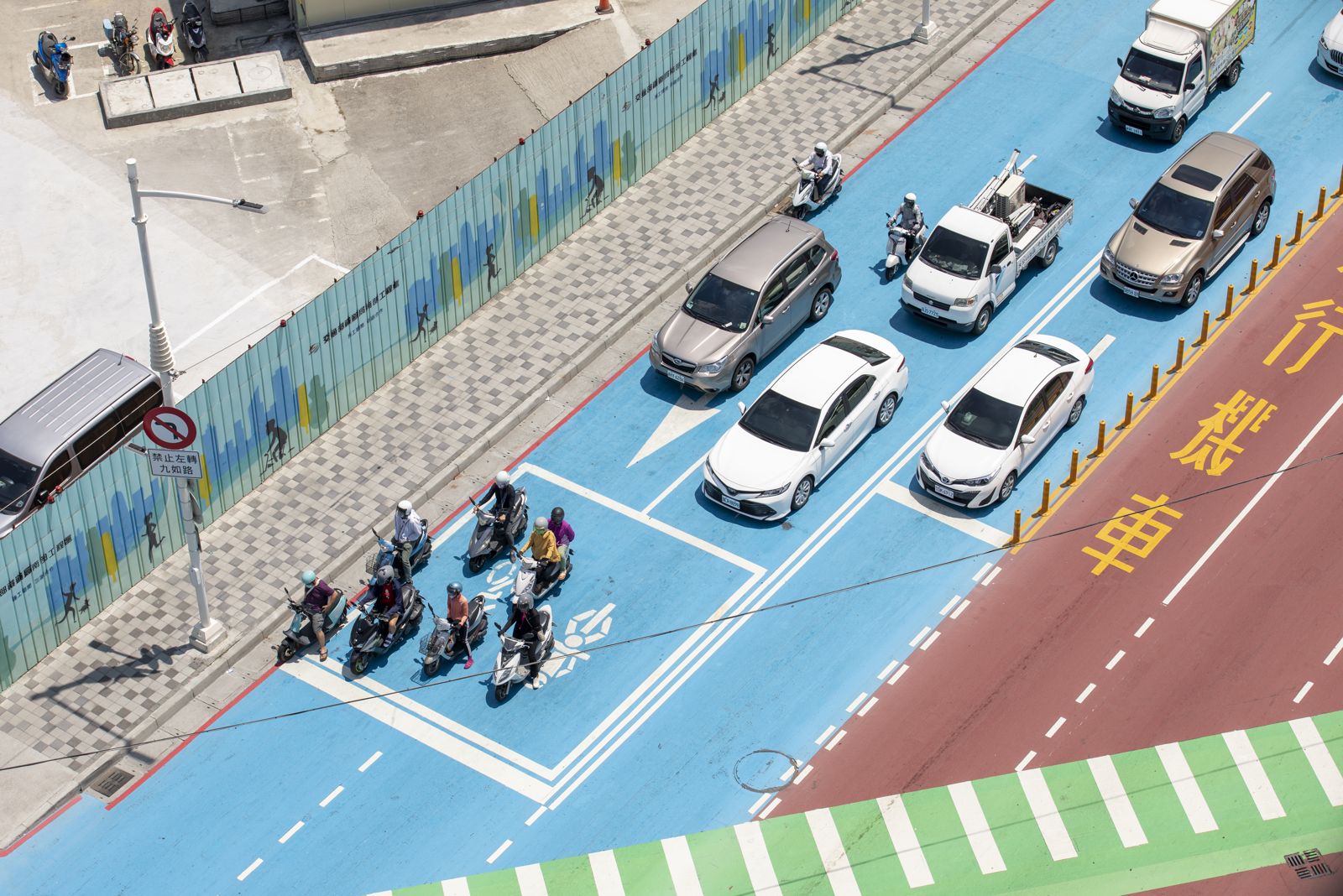 天氣炎熱時,不少民眾停等紅燈時會選擇陰涼處遮陽。圖片僅供示意,非新聞當事路段。發布時間:2023.09.11 12:59 臺北時間