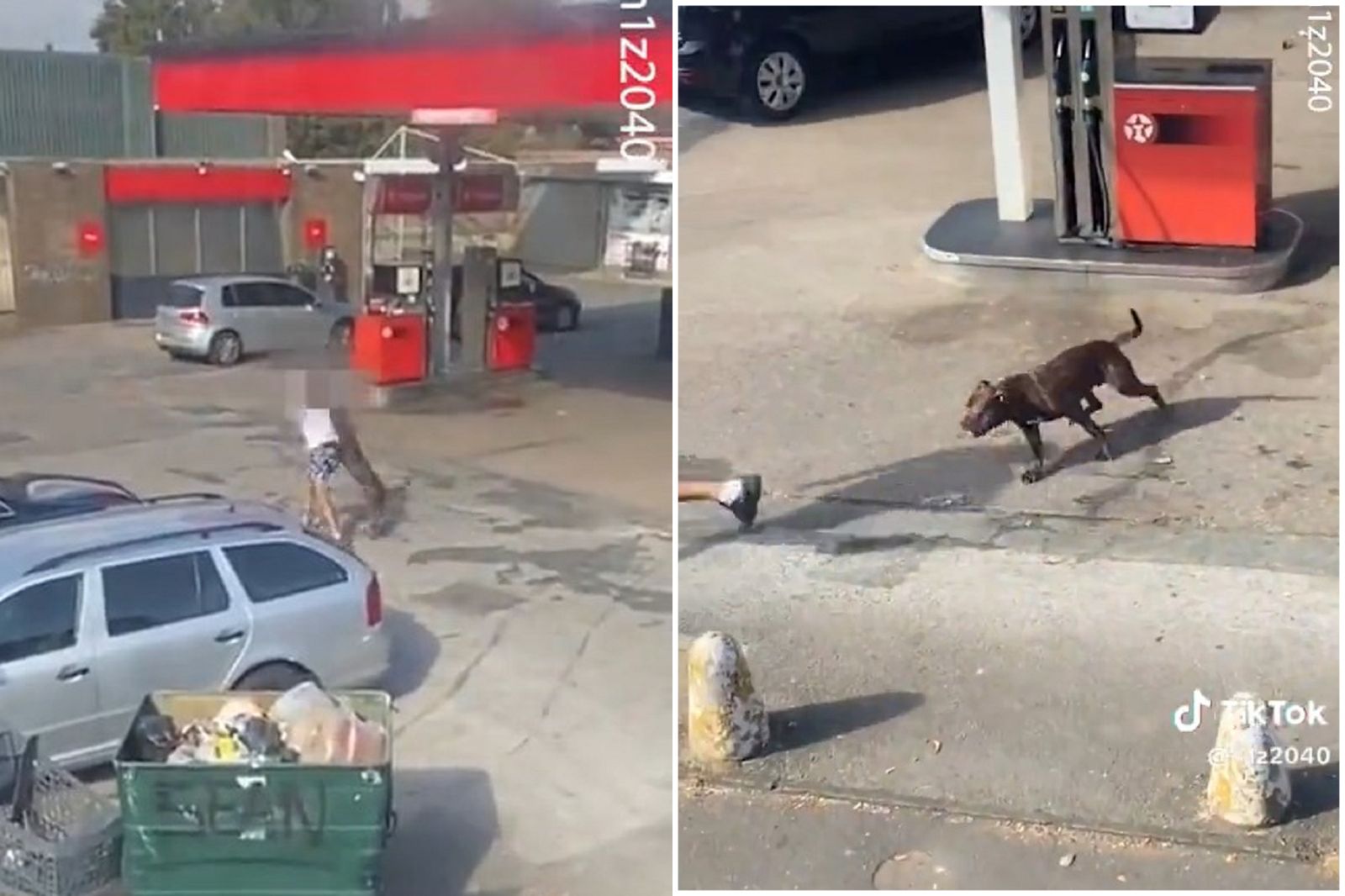 最後惡霸犬終於鬆口,跑離現場,但惡霸犬快速飛奔穿越大街,然後在對街的加油站停車場,又攻擊一名白衣男子。從民眾拍攝的畫面可見,這名男子幾乎敵不過惡霸犬的力量,整個人一度倒在地上,男子試圖掙脫惡霸犬攻擊,但惡霸犬只是越咬越緊,後來其他民眾發現後,大家合力要趕跑惡霸犬,甚至有人拿長棍對惡霸犬亂打,但惡霸犬似乎都不為所動,依舊對白衣男子死咬攻擊。據悉後來警方接獲通報,才將這頭惡霸犬「逮捕歸案」,隨後牠被送往獸醫院檢查,目前牠被安置在收容保護中心,而飼主正在接受警方訊問,全案已進入司法程序偵辦中。