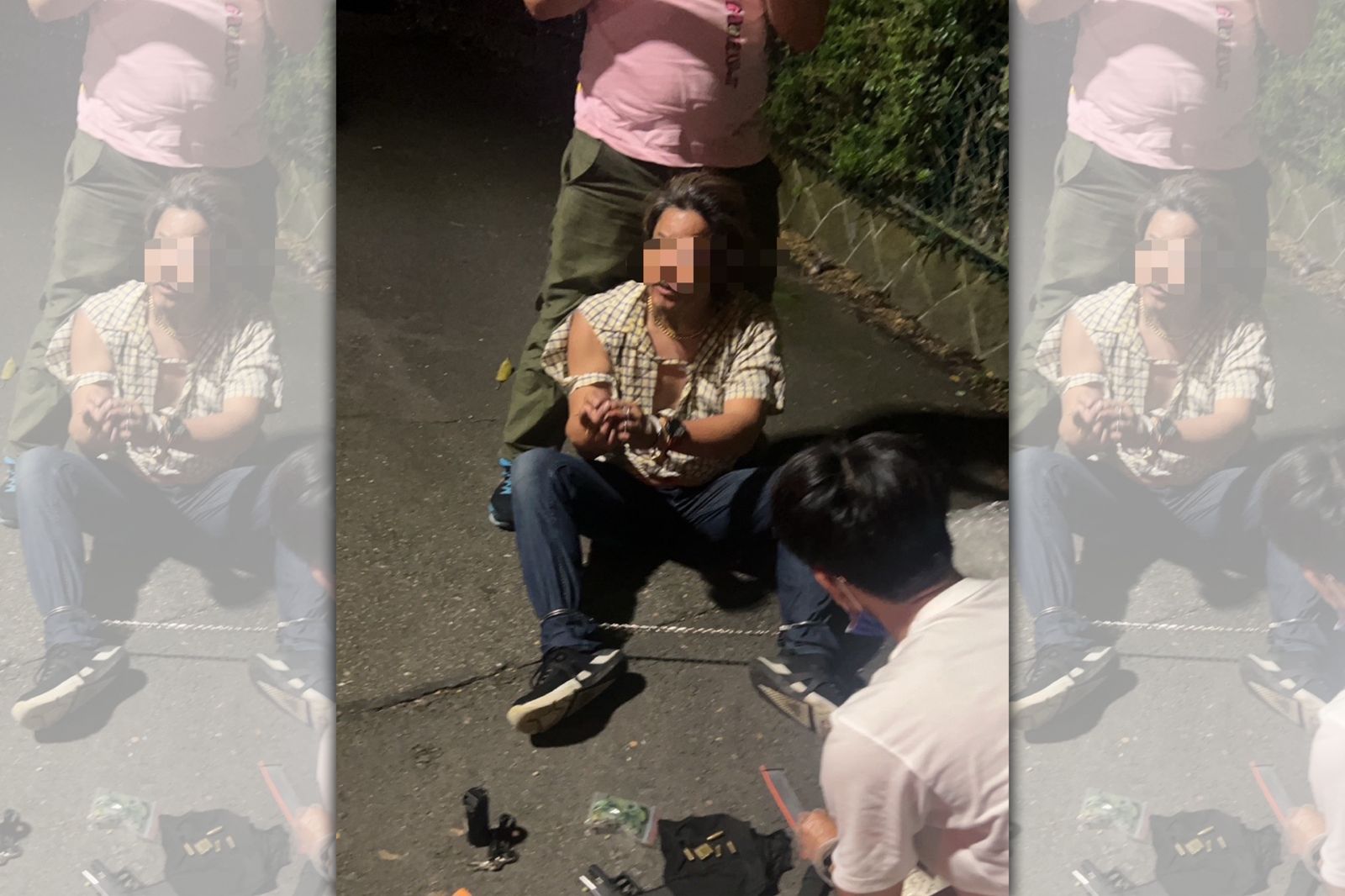 專案小組指出,對張嫌埋伏、跟監數月後,於今年9月初深夜,發現他出現於新北市淡水山區產業道路,立即上前圍捕。沒想到他自腰間掏出槍枝,準備拔槍射擊,同仁見狀迅速將他擒抱壓制在地,並當場起出克拉克手槍1把、子彈11顆。