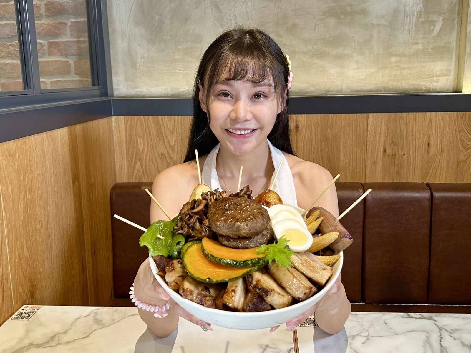 「Suage北海道湯咖哩」舉辦大胃王挑戰賽,活動從9月18日至10月31日止。「特大盛巨無霸雙拼湯咖哩」光漢堡排和豬肉角煮就有1.2公斤,分量驚人。(1,988元/份)店家特地邀請大胃王紅人泡芙來挑戰。沒想到人看起來很纖細,食量和速度好嚇人,才15分鐘就已經把料跟飯都吃完,但因為咖哩湯太燙,費了一些時間吹涼,最後只花21分32秒就完食,輕鬆挑戰成功,不用付任何一毛錢,還獲得1,000元抵用券。