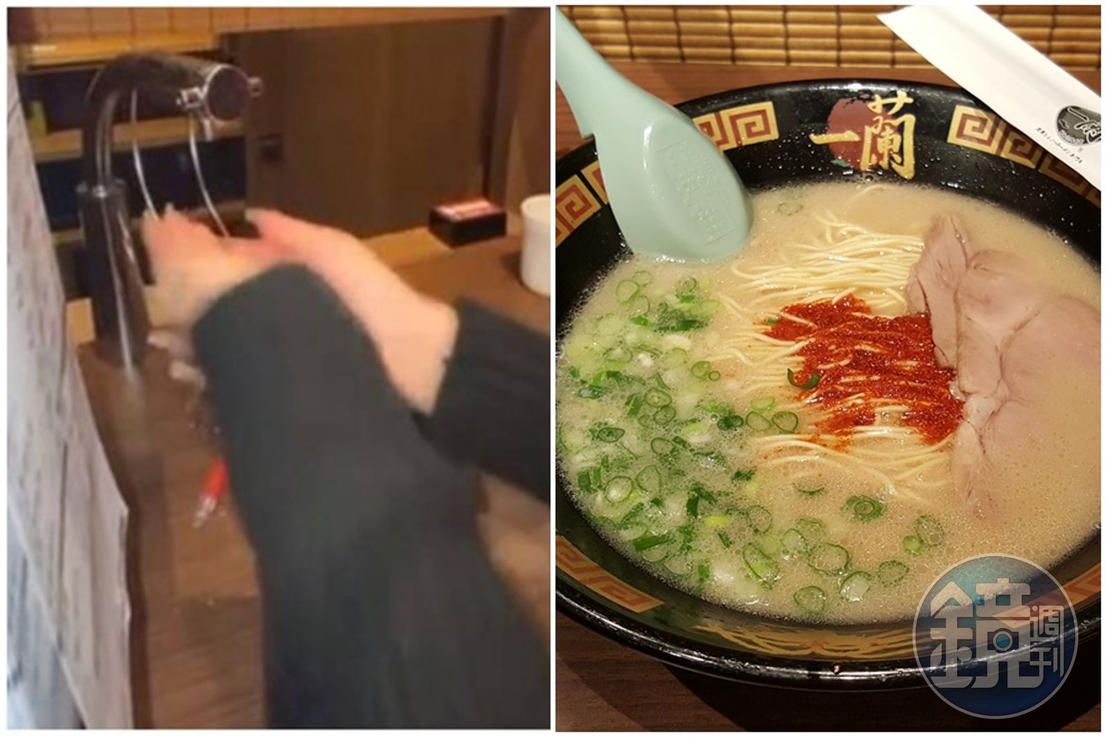 一名女網友在論壇Dcard以「一蘭的洗手台?」標題轉發5秒短片,只見一名美甲正妹到一蘭拉麵用餐,一坐下就直接打開桌上的「生飲水龍頭」洗手,接著再把桌上的水往地上掃,讓原PO看了大呼,「看到這個影片我真心覺得超級噁,我去都會用這個喝水欸??????」