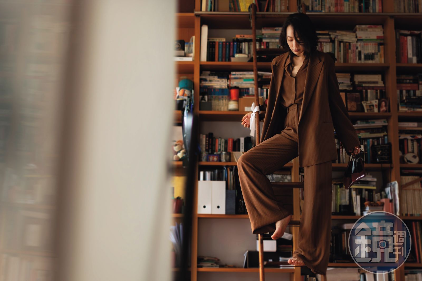 棕色直條紋西裝外套,NT$167,100,by Loro Piana;棕色直條紋絲質襯衫,NT$63,400,by Loro Piana;棕色直條紋長褲,價格店洽,by Loro Piana;酒紅色尖頭高跟鞋,NT$31,600,by GUCCI。發布時間:2023.09.22 05:58 臺北時間