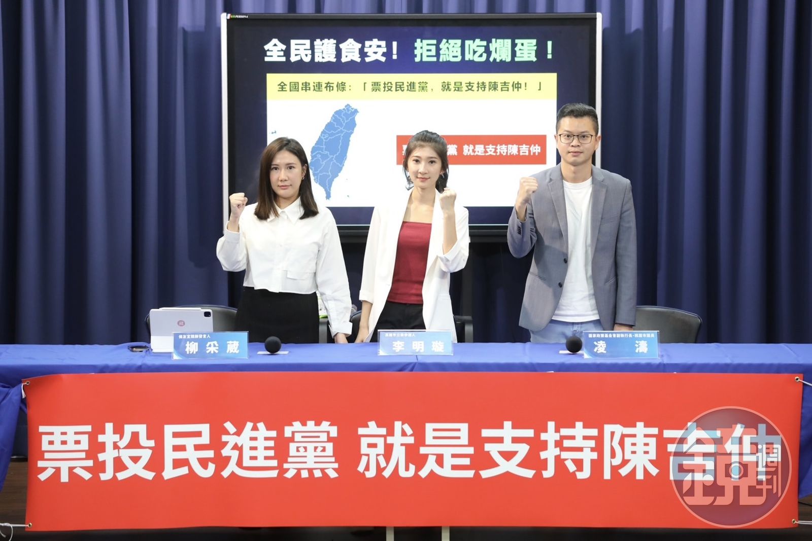 國民黨高雄市立委參選人李明璇、桃園市議員凌濤、台北市議員柳采葳今共同召開記者會,質疑農業部長陳吉仲讓超思爽賺3800萬,卻讓全民慘賠4.3億。侯競辦上午也由發言人黃子哲、國民黨立委參選人李彥秀、新北市議員陳偉杰,召開「進口雞蛋流向不明,銷毀成謎—陳吉仲下台?食安未爆『蛋』!」記者會,直指陳吉仲是「低估損失、低報過剩、低級態度的三低部長」。
