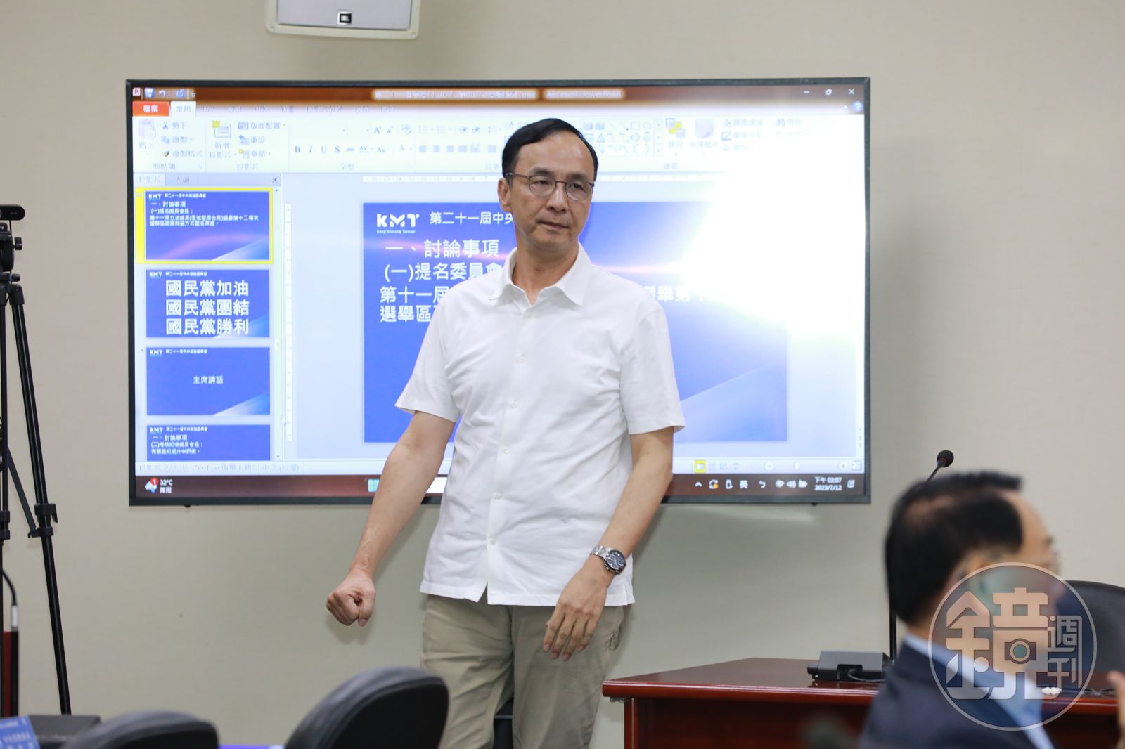 日前國民黨屏東縣議長周典論高調挺郭、周典論的女兒國民黨中常委周孟蓉,還在郭台銘到屏東掃街時陪同逛夜市,傳出藍營內部將向考紀會檢舉,朱立倫被問到是否處理此事,他表示國民黨的考紀非常嚴肅、嚴正,不會因人而異,將會嚴正面對。