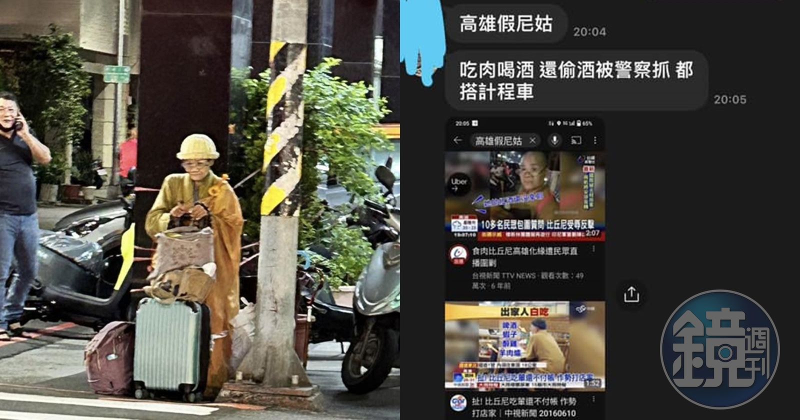 一名外送員在臉書社團「爆怨2公社」發文,表示在送餐等紅燈時看到路邊有位大包小包的比丘尼,便起了惻隱之心投50元,沒想到送完餐就接到小費40元的單,讓他驚呼「神力再現」趕緊跟朋友報喜,結果被狠狠打臉,因為那位比丘尼就是高雄有名的「假比丘尼」。