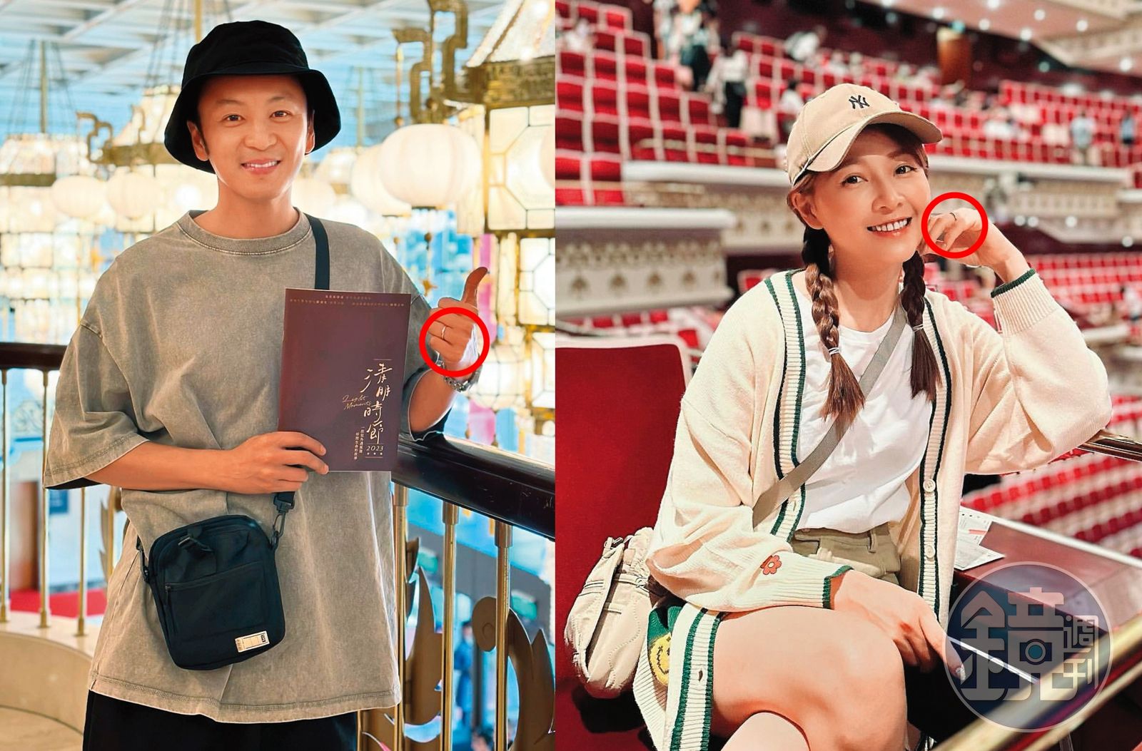 日前張書偉和謝京穎去兩廳院看綠光劇場的舞台劇《清明時節》,兩人都拍照幫忙宣傳,雖然並未同框,但在各自的IG都曬出了同個場景的情侶視角照,從他們洋溢幸福笑容的照片中可見,小倆口的左手無名指,都戴上了一只同款式的銀戒,就是傳聞中兩人閃閃發光的定情戒。
