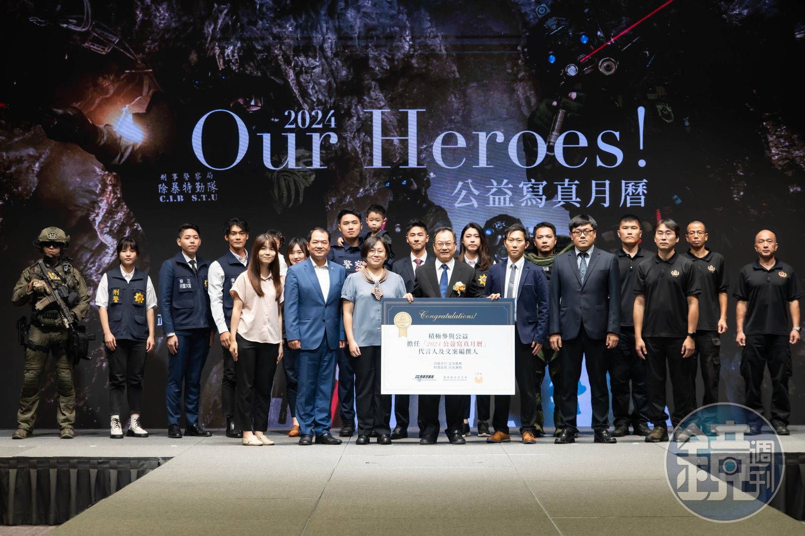 這次,寫真月曆內12個月份的公益代言人、4位英雄人物全數齊聚現場,並透過現場演示各個主題,將刑警時尚且專業的一面展現予現場與會嘉賓,英氣神態振奮全場。