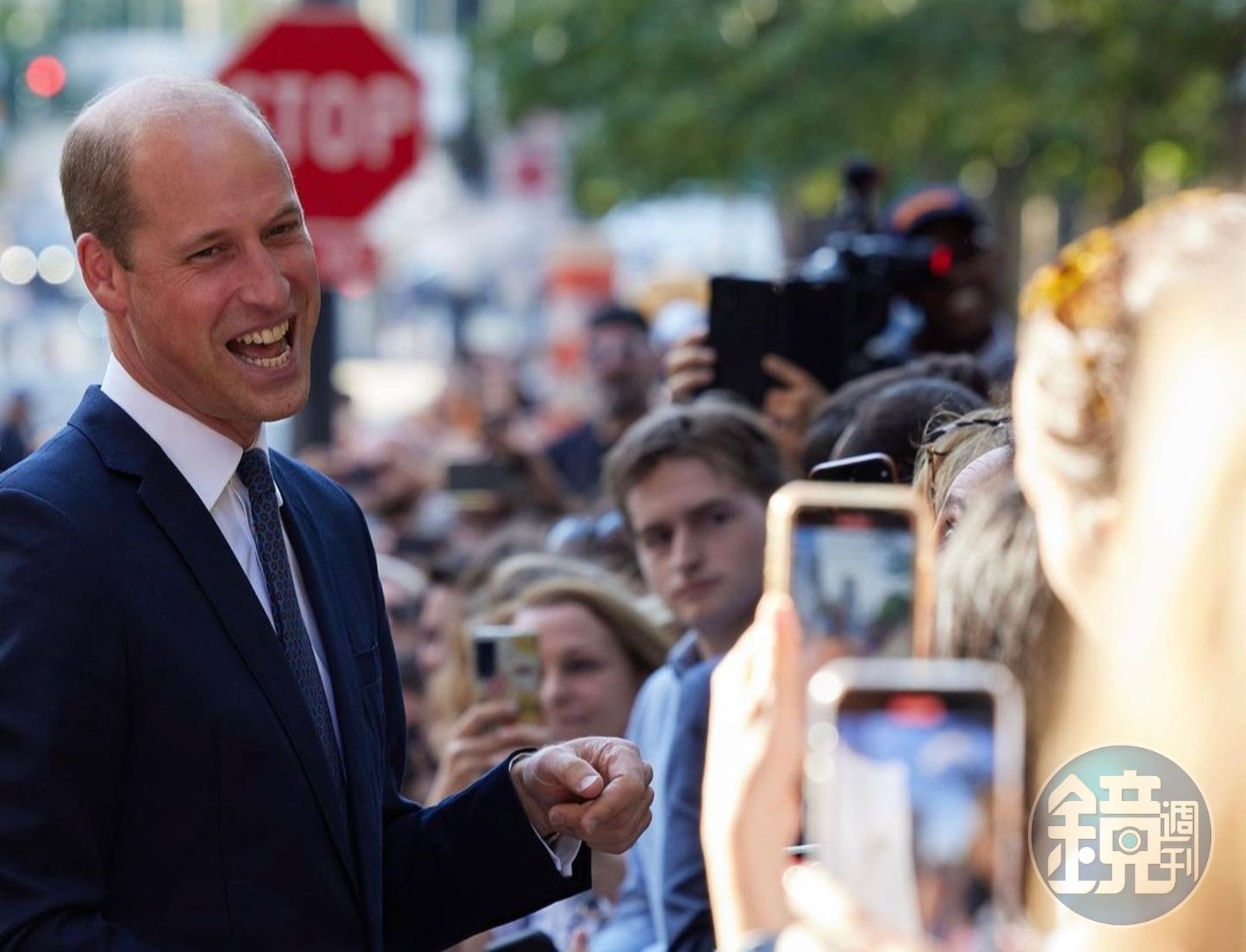 威廉王子參訪紐約消防局,外頭擠滿熱情群眾,他一一向民眾握手、寒暄、自拍。有民眾送他「I LOVE NY」(我愛紐約)的白色T恤,他也高興收下,親民舉動收服紐約客。