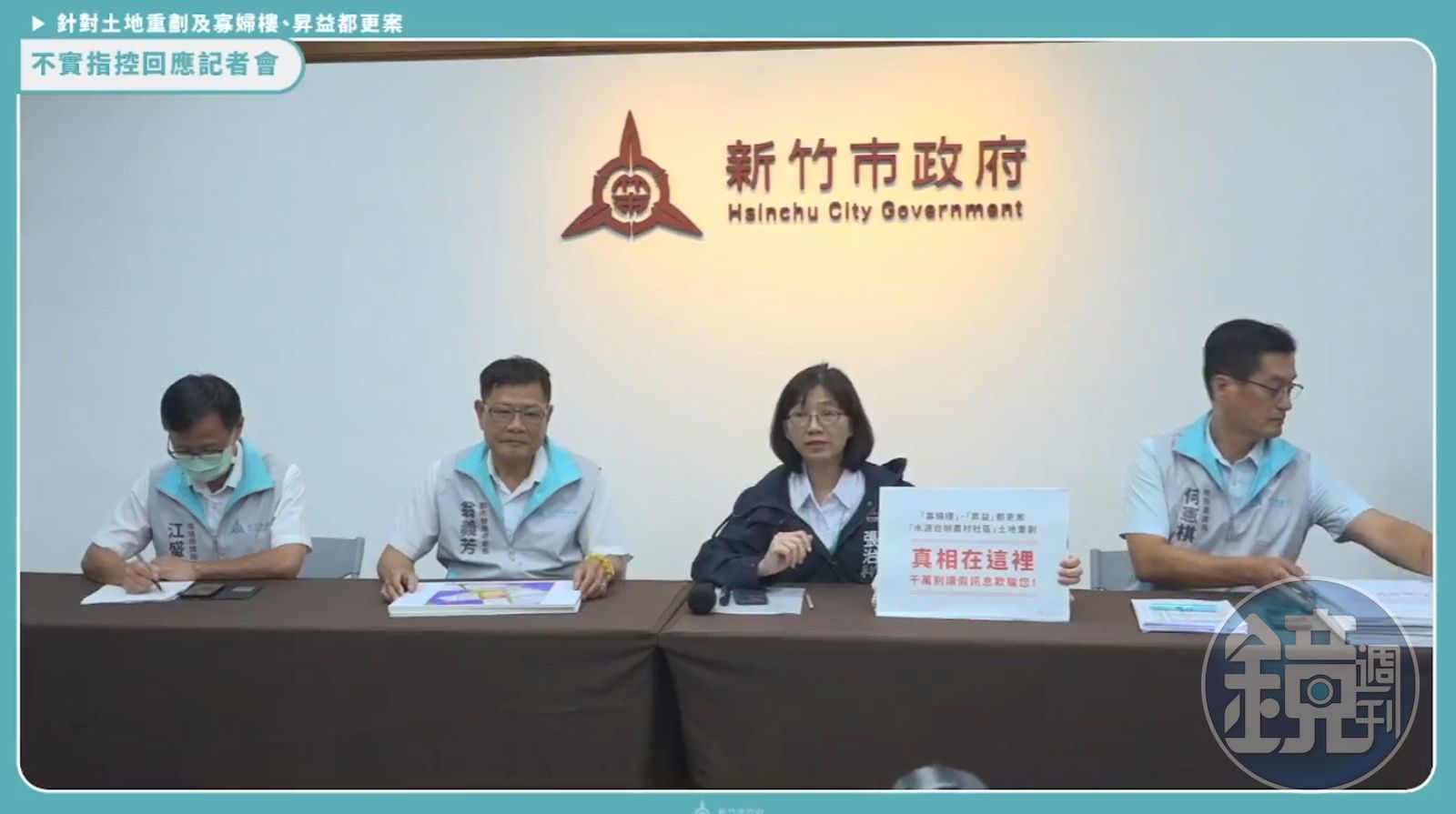 新竹市政府祕書長張治祥與都發處長翁義芳、地政處長何憲棋、環保局長江盛任、文化局代理局長李欣耀共同召開記者會,澄清寡婦樓都更案、昇益合建都更案、水源自辦農村社區土地重劃均在林智堅前市府時期即啟動,無所謂凍結一事。