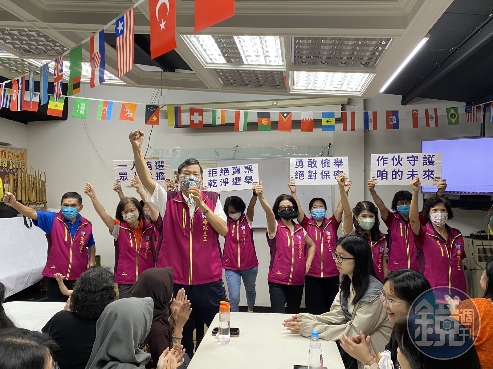 「一人賄選,眾人承擔」「拒絕賣票,乾淨選舉」「勇敢檢舉,絕對保密」「作伙守護咱的未來」嘉義市政府政風處廉政志工團隊以自編台語順口溜及「檢舉顧未來」手語歌舞,向新住民朋友宣導,切勿將投票權作為換取利益的籌碼,遇有賄選行為時,請鼓起勇氣撥打檢舉專線0800-024-099轉4,才能真正達成選賢與能,共創廉潔社會的願景。