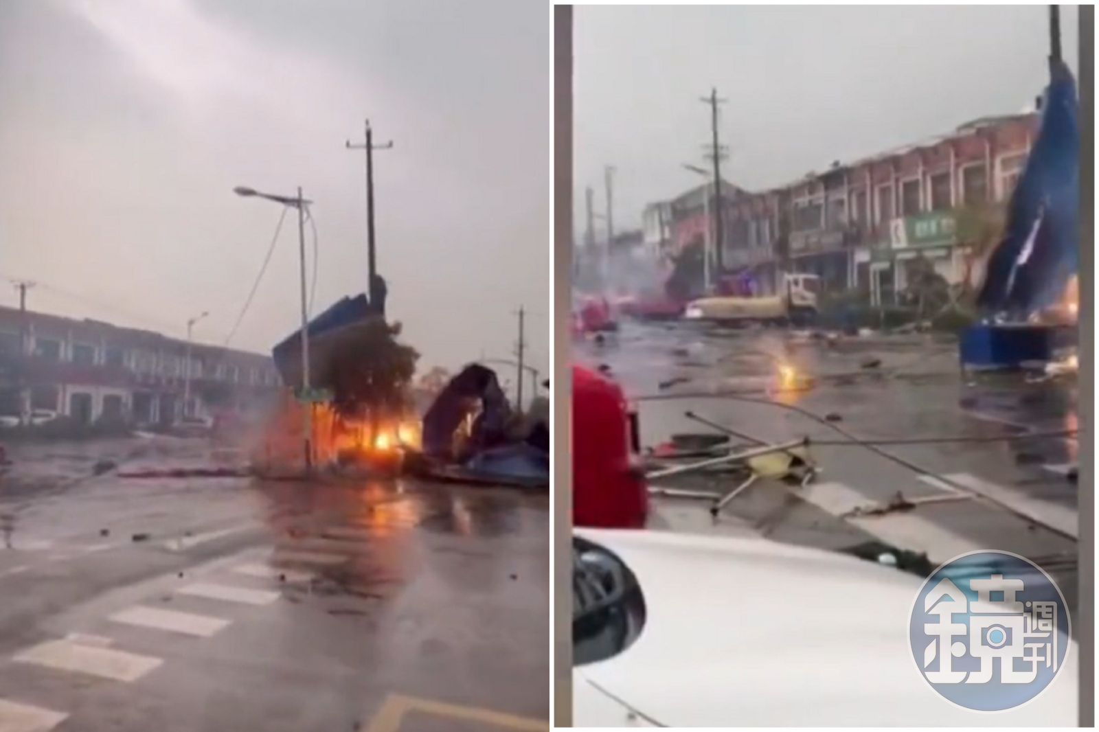 包括江蘇的宿遷市和鹽城市,都在本月19日下午5時做有,陸續遭遇嚴重的龍捲風襲擊。從民眾拍攝的影片可見,當龍捲風來襲時,烏雲罩頂、狂風肆虐,宛如世界末日降臨。街上更可見有許多大型物體被吹起亂飛,道路高壓電更因此被吹斷,造成多處發生小型火災;另外停靠在路邊的車子更不用說,幾乎都被吹落的大型物體砸到損毀,或者被吹翻。