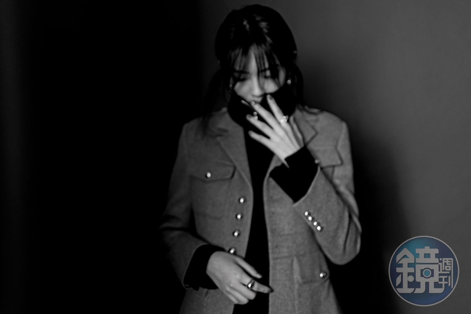 斜紋羊絨SAHARIENNE外套 NT$155,000 by CELINE BY Hedi Slimane/ARKSVILLE針織半拉鍊上衣 NT$85,600 by Loro Piana/Heritage系列氧化純銀鑲銀球耳環 NT$8,300 by GEORG JENSEN/Mercy系列純銀戒指 NT$9,600 by GEORG JENSEN/Moonlight Grapes系列純銀戒指 NT$8,000 by GEORG JENSEN