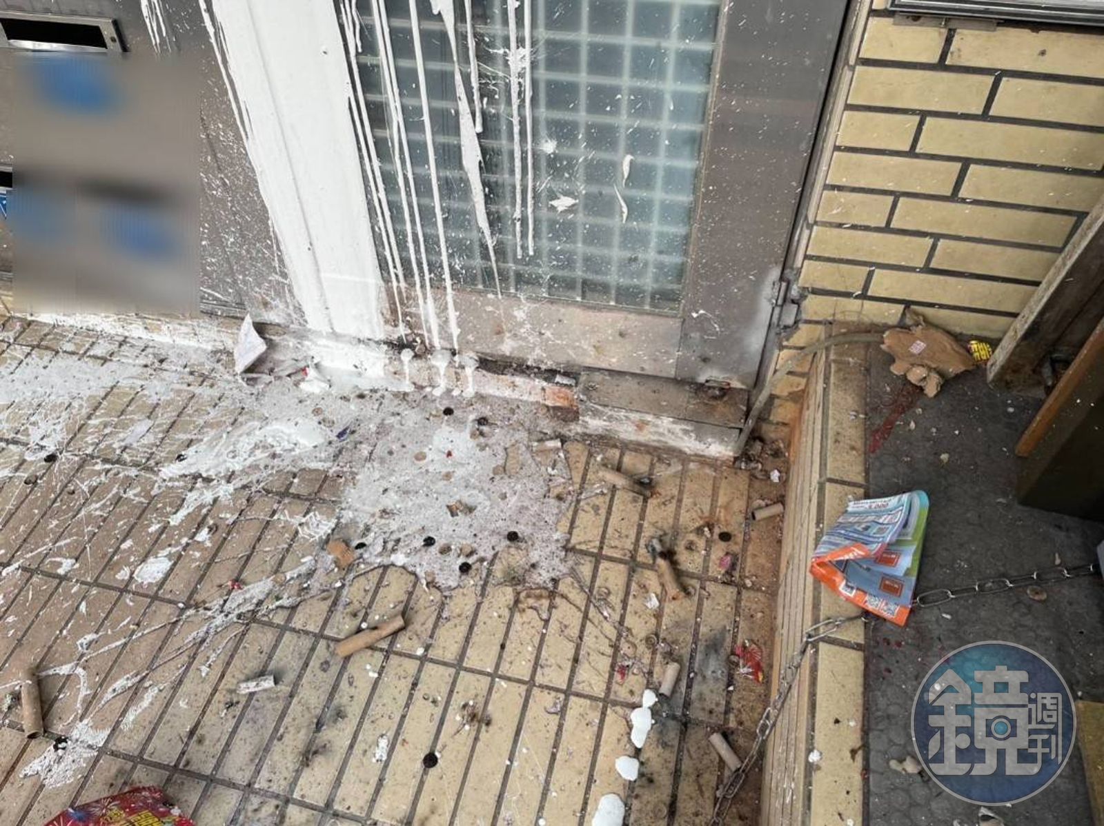 江女住家不但被潑漆,還被用紅漆在牆上寫討債字句。(翻攝畫面)謝女到案後,向警方坦承犯行,警方偵訊後將她依照恐嚇、違反個資法移送法辦。