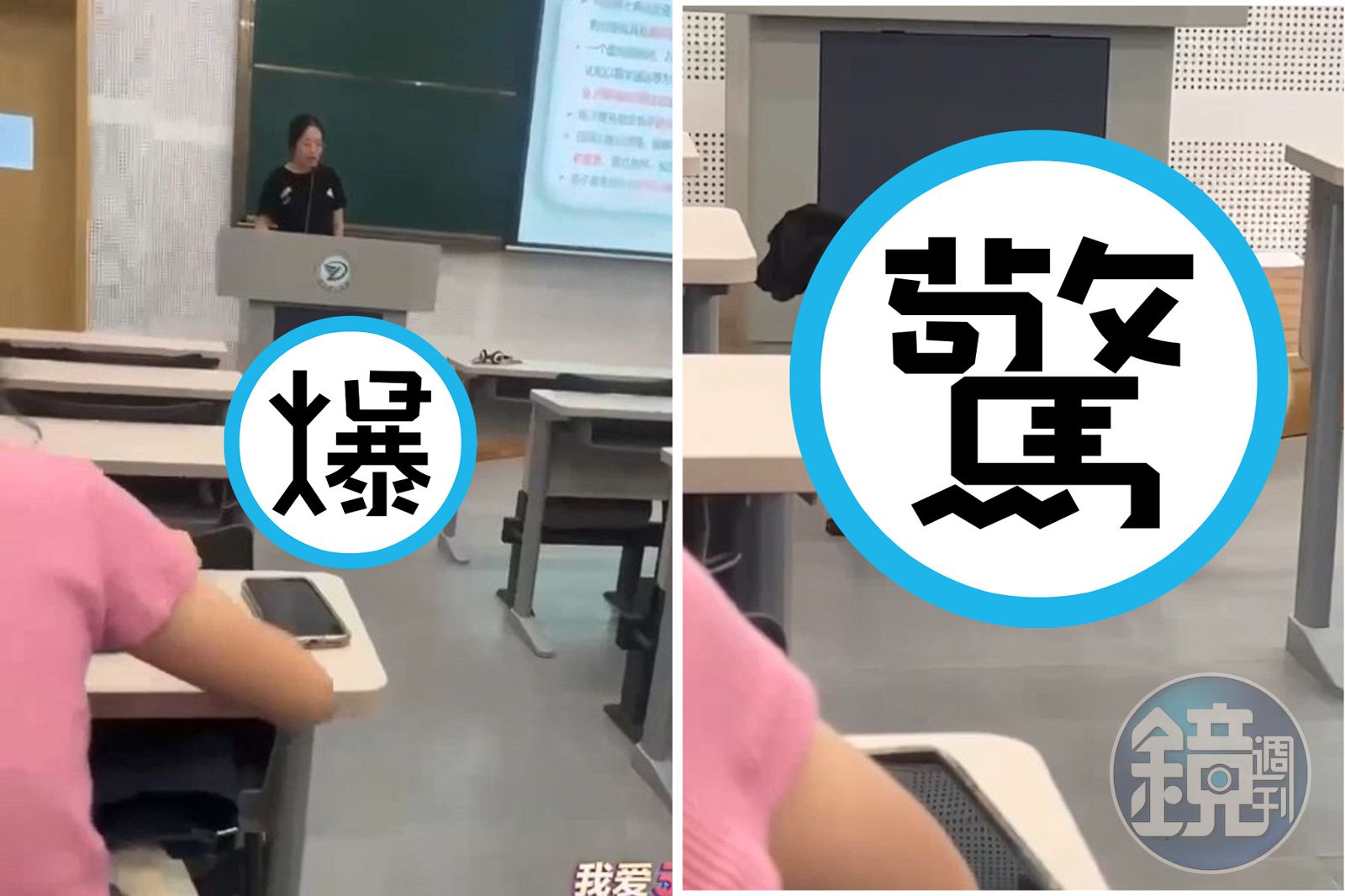 影片可見,當時老師正在講課,但這時突然有一對「狗男女」,無視還在上課期間,就在學生們的面前,當眾「狗爬式」做愛活春宮,引起學生們注意,甚至有人興奮拍攝。不過反觀老師倒是相當淡定,依舊持續進行教學課程。 這段影片隨後被傳開並引發網友討論,網友們紛紛直呼:「真的是母狗太操勞!」、「進去了嗎?速度有點快啊!」、「牛逼。」、「真狗男女。」、「這間學校真包容。」
