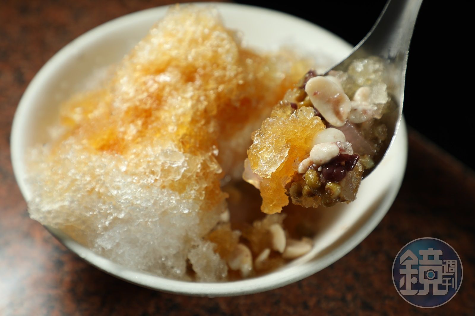第一次來不知點什麼,那就來碗「綜合冰」吧,鬆軟的花生、薏仁,煮到帶沙的紅豆、綠豆,本來軟Q的湯圓遇冰之後變得更Q彈,裡頭還有一些粉條,全都是手工自製,加上清冰、淋上煉乳,就是古早冰的極致版。