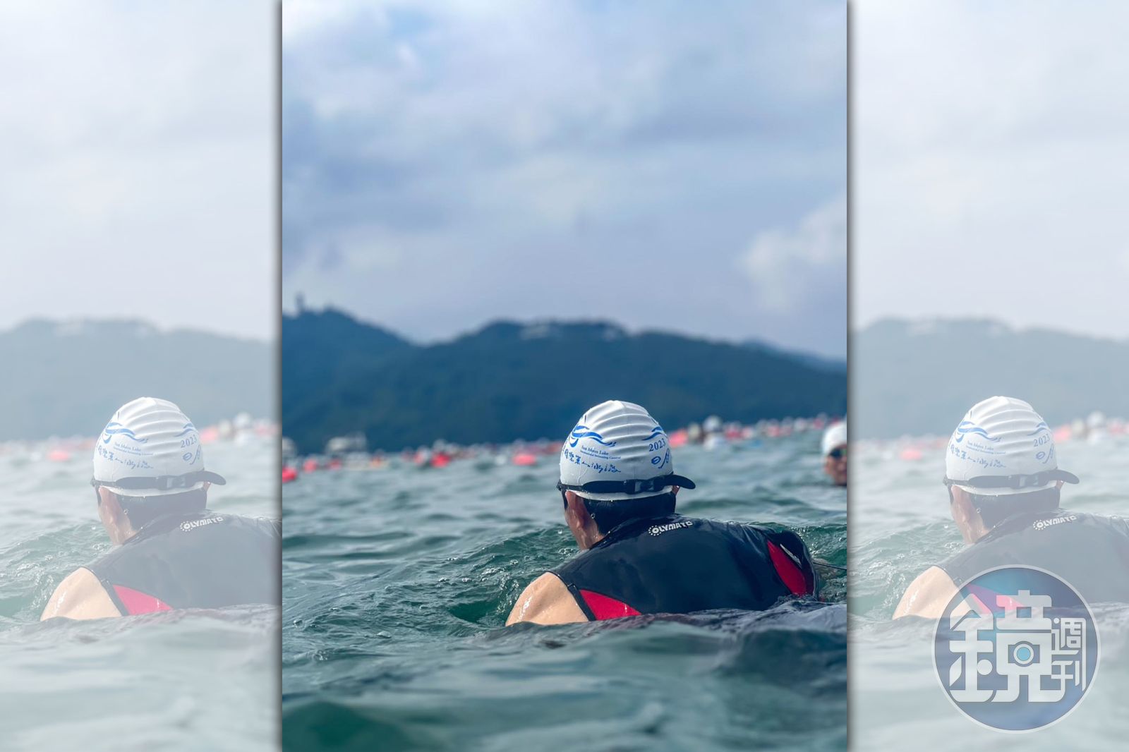 馬英九貼出自己泳渡日月潭的帥氣背影,接著公布今年成績「2小時48分鐘」,成績較去年進步了2分鐘,讓他開心直呼:「看來身體還行,明年繼續!」