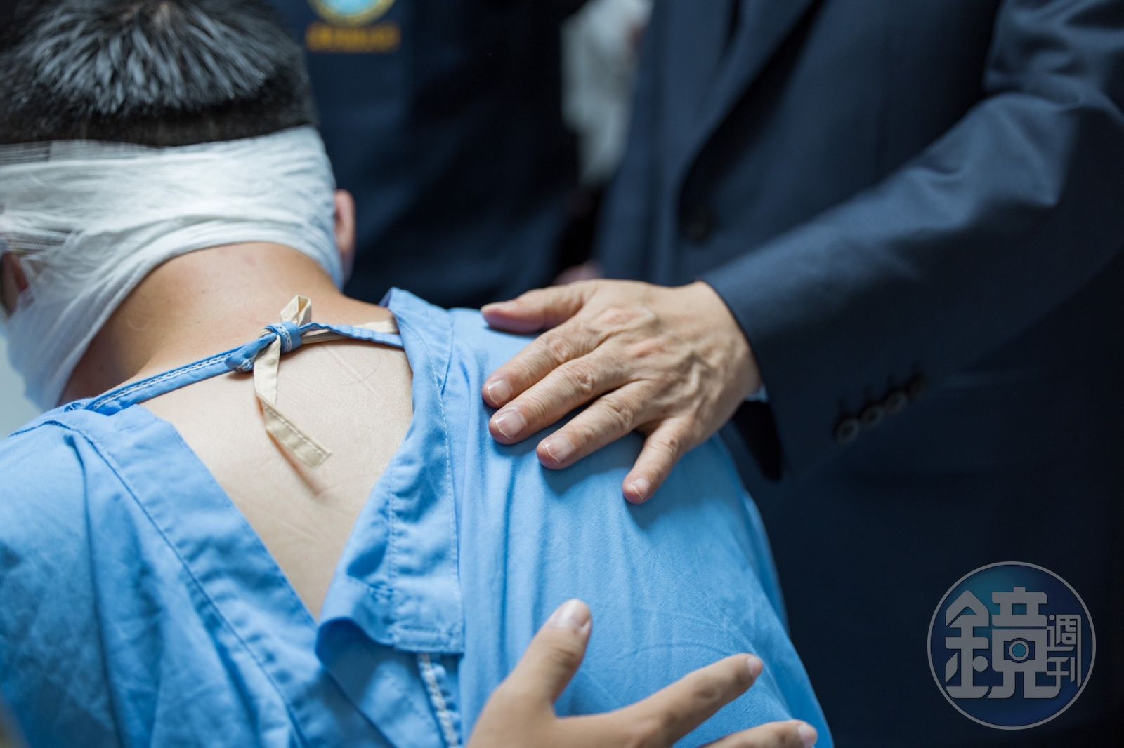 賴清德昨前往醫院探視,立委鍾佳濱轉述,賴清德見到小隊長時,陳文川痛哭到病房外都聽得到,而太太和2個兒子在旁安慰。