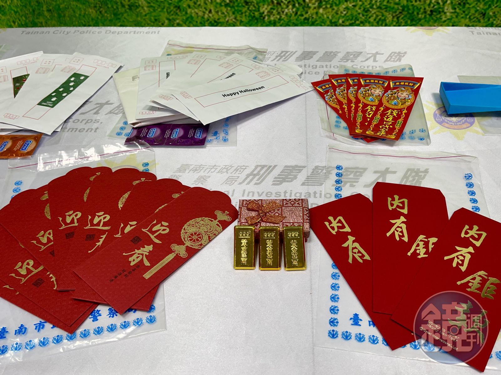 警方調查,台南高分院、台南地檢署、地方法院多名法官、檢察官,自前年底開始,陸續在院、檢辦公室及公務宿舍等處,分別接獲不明歹徒所寄送香奠袋、紅包、安太歲字條或御守等物品。白包暗示死亡之意而有加害生命、身體之惡害通知,安太歲字條暗示當年恐發生不幸之事以安太歲祈福消災,接到的司法官們心生恐懼及生活深受其擾,案經台南地檢署指示台南市警方偵辦。