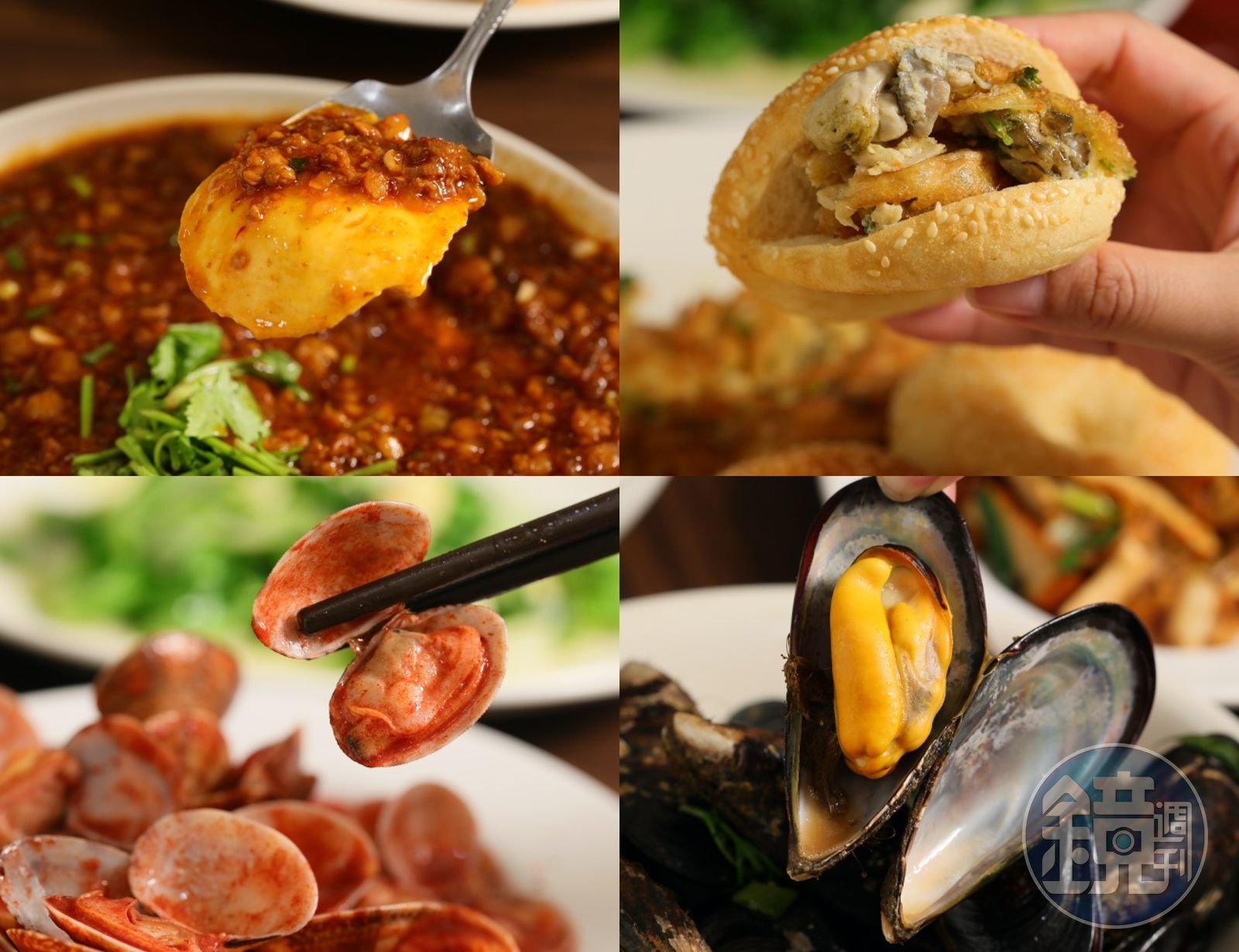 在馬祖,餐廳幾乎都點得到「馬祖漢堡」,將撒滿芝麻、中央有孔的繼光餅,中間夾入生蚵煎蛋、梅干扣肉等內餡,是在地一大特色美食。不過「馬祖披薩」我是頭一次見到,鹹香的濃郁肉醬鋪滿軟嫩蒸蛋超級下飯。自釀紅糟爆炒的「紅糟海瓜子」接續上桌,又是一盤白飯小偷組合,一入口中就能感受超濃郁的紅糟味爆擊。