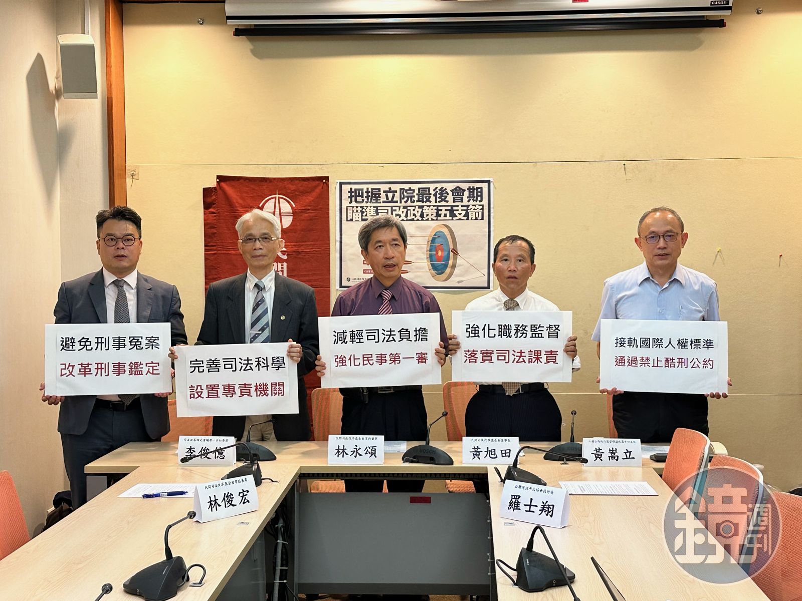 司改會指出,目前仍有5大司改法案尚未完成,首先是可避免冤案部分,應早日通過《刑事訴訟法》鑑定制度修法,減少司法系統性錯誤,其次是為接軌國際,應趕快通過「禁止酷刑公約施行法」,設置「國家酷刑防範機制」,防免系統性的人權侵害,再來是整合跨機關資源,設立「國家司法科學委員會」,整合資源推動司法科學政策,第四項是為了守護司法品質,應修法減輕司法負擔、強化民事訴訟第一審,最後是加強司法課責:強化院長監督法官責任,修正《法官法》職務監督。
