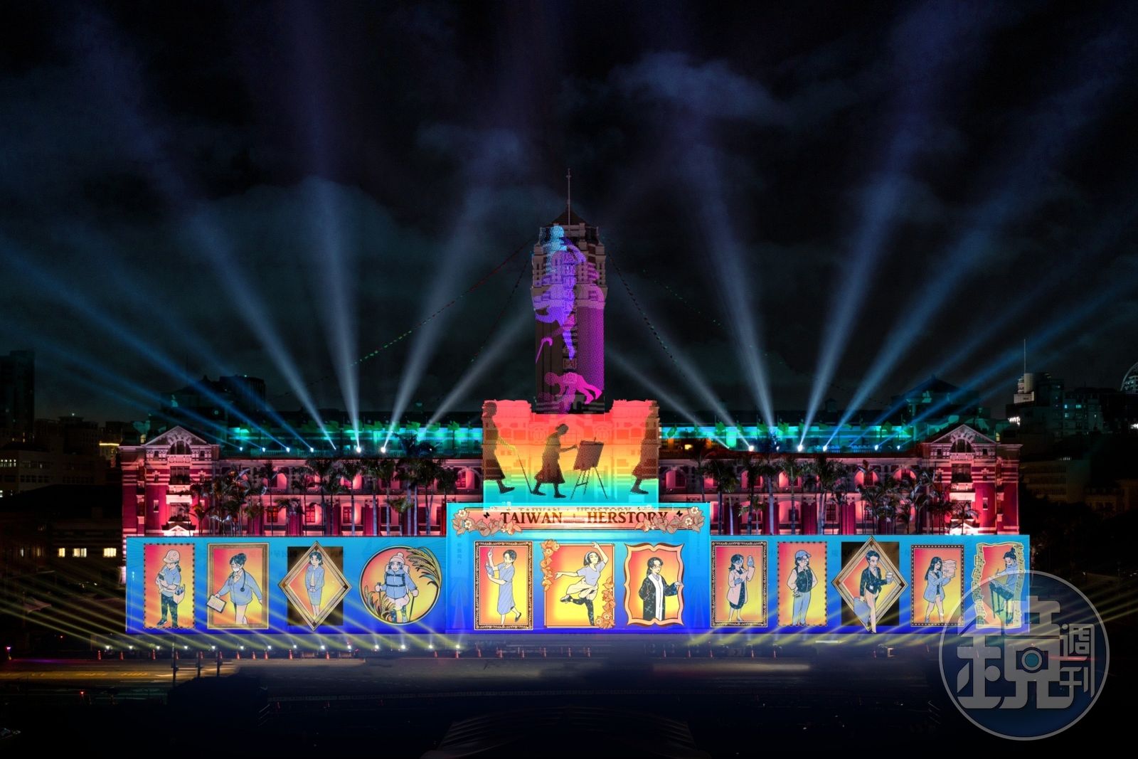 國慶光雕導演暨藝術總監陳怡潔分享創作理念,女性不只是阿嬤、不只是媽媽,更在各行各業都具有傑出表現,因此今年邀請金馬影后「國民阿嬤」陳淑芳獻聲,介紹台灣各領域的女性領航人,包含首位女性畫家陳進、首位女性導演陳文敏、首位現代客語詩女詩人杜潘芳格、首位女性記者楊千鶴、首位女性哲學家林素琴、首位女性詩人陳秀喜。