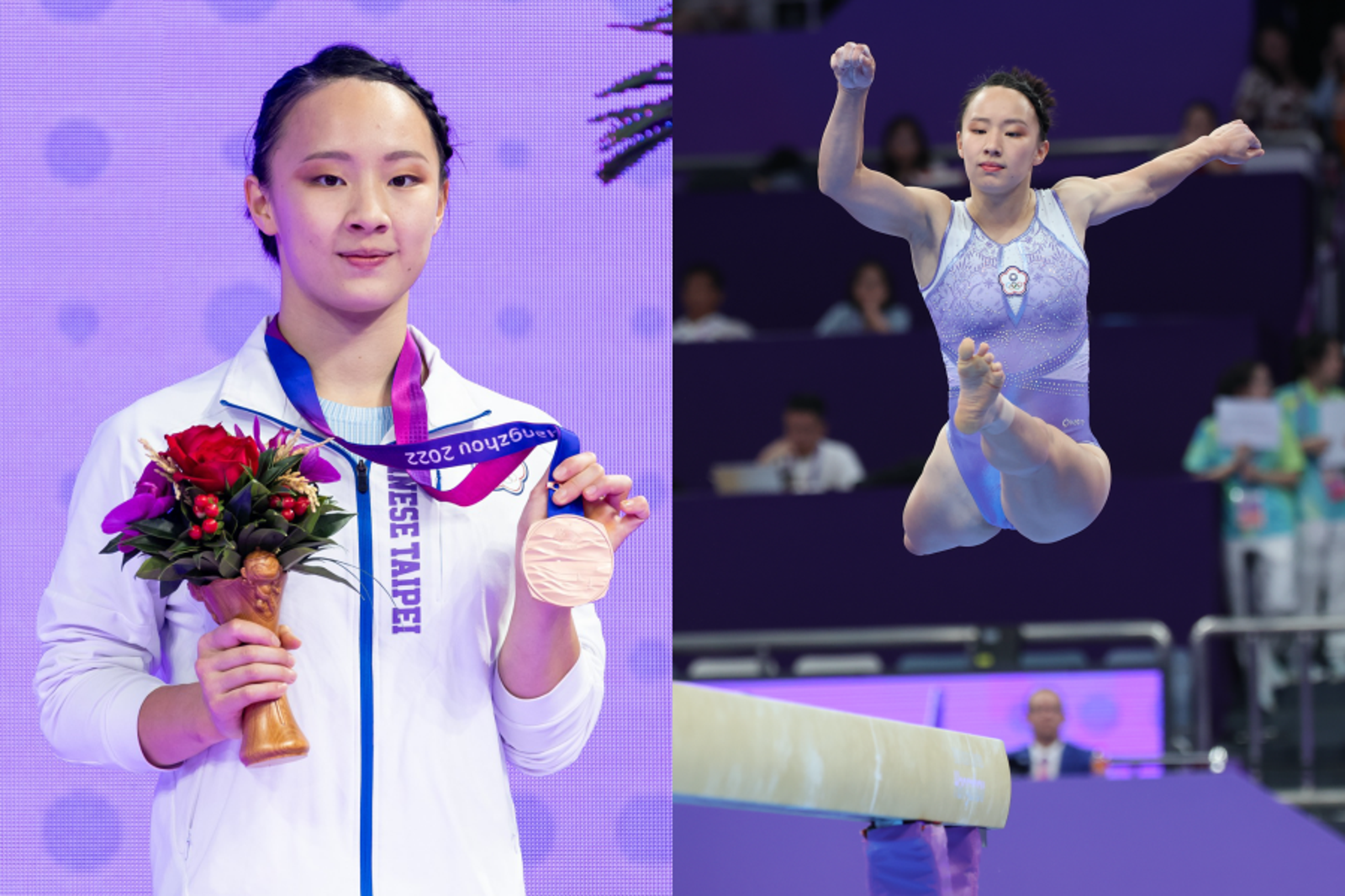 丁華恬今日於女子體操平衡木出賽,並在第二個出場,最終以難度分5.6,完成分7.700,拿下13.300的高分,並且一路領先。不過在倒數第二位上場的日本選手岡村真上場後,其表現十分優異奪下13.966分,丁華恬暫居第二,最後地主選手唐茜靖頂住地主壓力,獲得13.733分,最終丁華恬收獲銅牌。 丁華恬曾在2019年在亞錦賽贏得平衡木金牌,也是台灣首面平衡木金牌,並且遞補進入東奧出賽,經過奧運洗禮,本次丁華恬在亞運斬獲銅牌,也是台灣史上第一人的大紀錄。截至目前,台灣共累計5金4銀9銅。