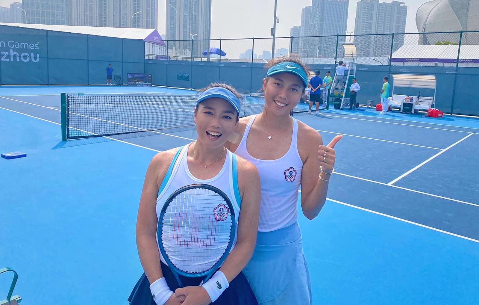 在這場備受關注的寶島內戰中,雙方開賽三局互破,不久後,詹家姊妹再度率先破發,以6:4拿下第一盤。 第二盤,詹家姊妹延續猛烈攻勢,李梁組合雖在被兩破後反撲緊追,但最終詹家姊妹仍以6:3奪下勝利。 台灣組合網球女雙上演「金包銀」,目前台灣隊在本屆亞運獎牌數為7金、8銀、9銅。