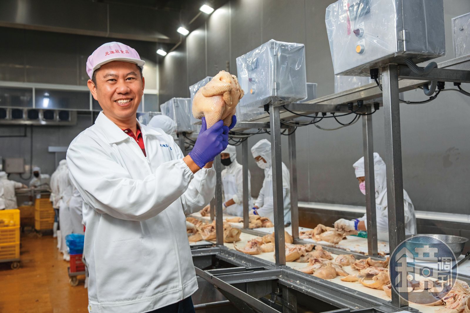 孵蛋、養殖、屠宰、加工,一條龍的生產方式,使成本、數量與品質都可以控制,「原料來源穩定,客人就穩定,他不要今天跟你買100元,明天買105元;再來外面買原料,有沒有用藥?吃什麼?會多一層風險。衛生局每天在通路檢查,抽到一次就死了啦!我們比誰都怕,自己養的屠前、屠後、產品,一共檢查3次。」