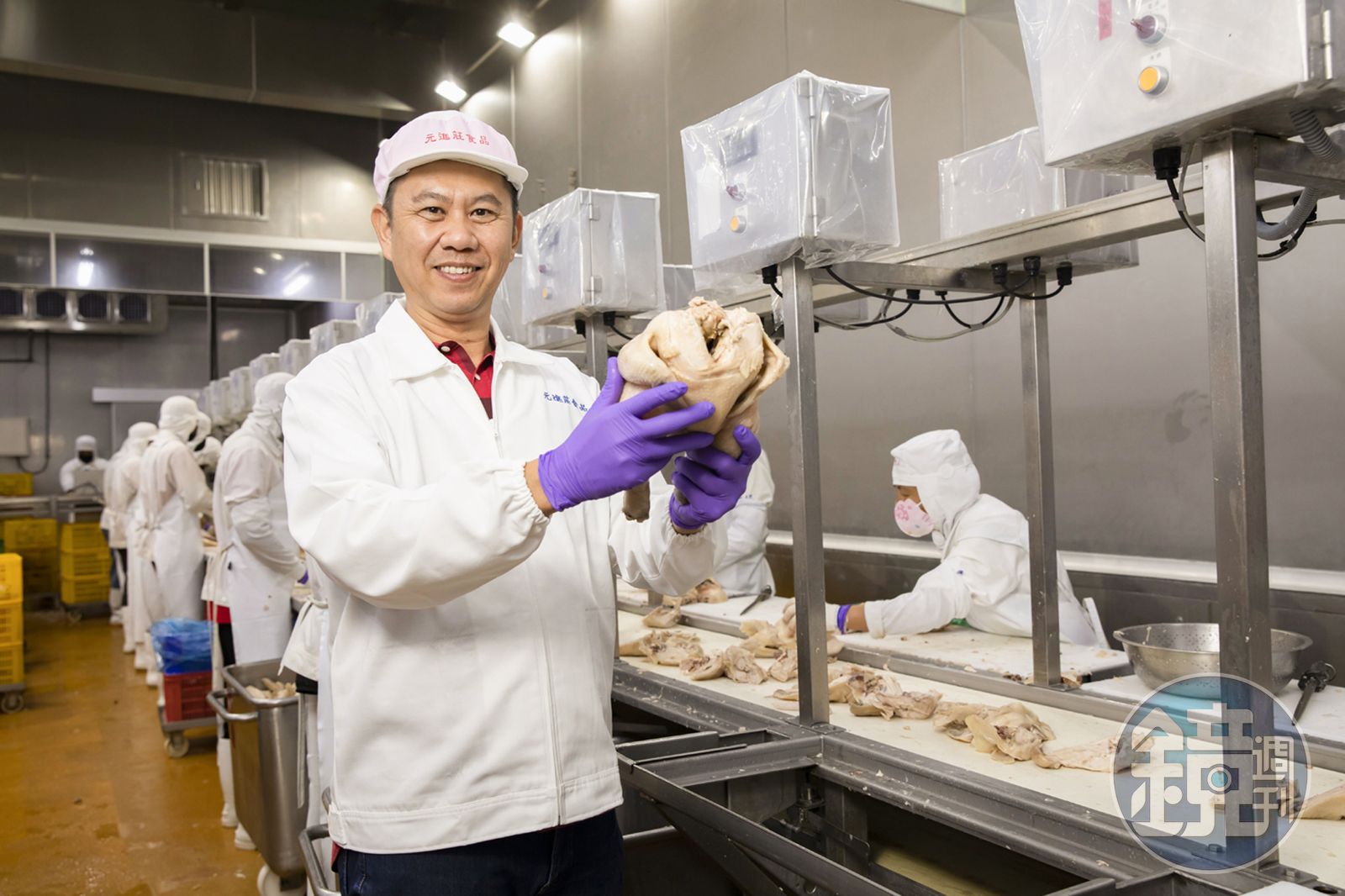 「我們的雞都是土公雞,不會油,只會有膠原蛋白的果凍,口感緊實Q彈,又甜。」吳政憲說現在市面上土雞產品元進莊市占最高,每天要做1.2萬隻。傳統市場占6成,超市、超商、大賣場是100%,所以品管得嚴格,有些產品包裝後還要經過金屬探測、X光機。