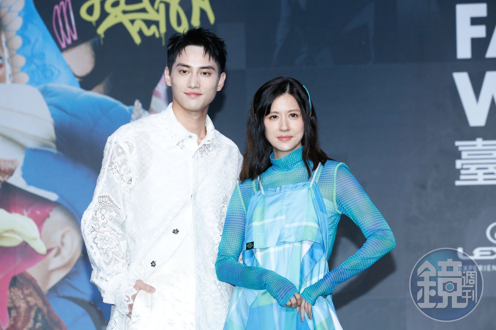 范少勳(左)與林予晞今日一同出席台北時裝週記者會,范少勳則穿著設計新銳唐宗謙的同名品牌TUNG TSUNG CHIEN設計的一套蕾絲上衣搭配緞面長褲登場。特別的是,上衣服是用窗簾、桌布的概念設計,讓他特別感受到「家的味道」。
