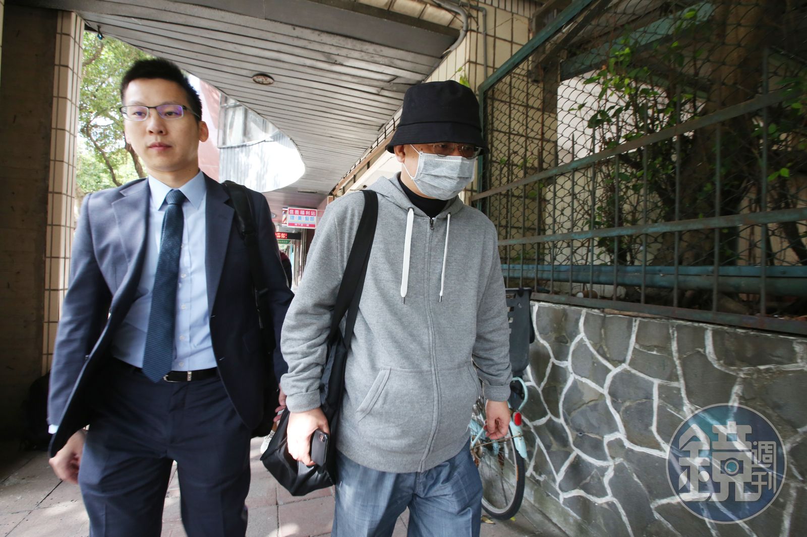 向心(右)因涉違反國安法於2019年間遭到約談並起訴境管至今。圖為2019年間遭北檢約談畫面。發布時間:2023.10.12 12:11 臺北時間