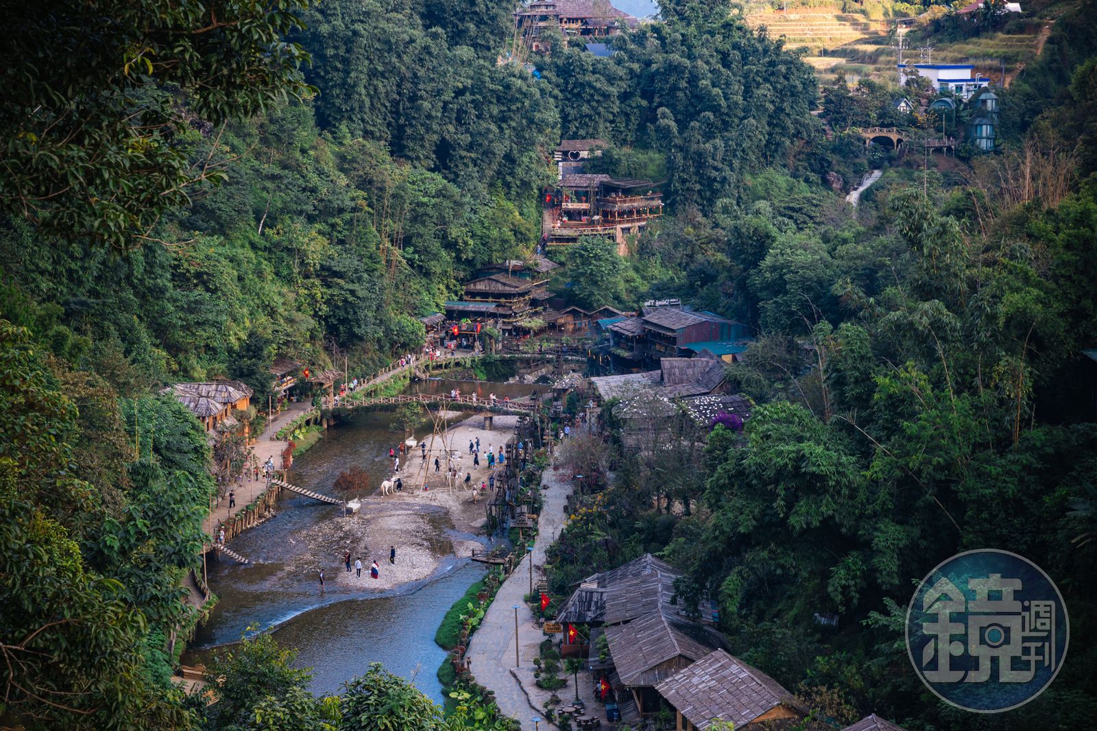 在地導遊小陳向我說明,外頭販售商品的攤販大多都非這裡的住戶,吉吉村在疫情後才開放遊客深入到有人居住的區域,現在比以前更值得走一遭。比如你可以看見一群小孩正若無其事地穿越溪流,還有幾個「越南大叔」在溪裡沖涼,一旁婦女們正在燃燒稻梗,這就是吉吉村真實生活民居。
