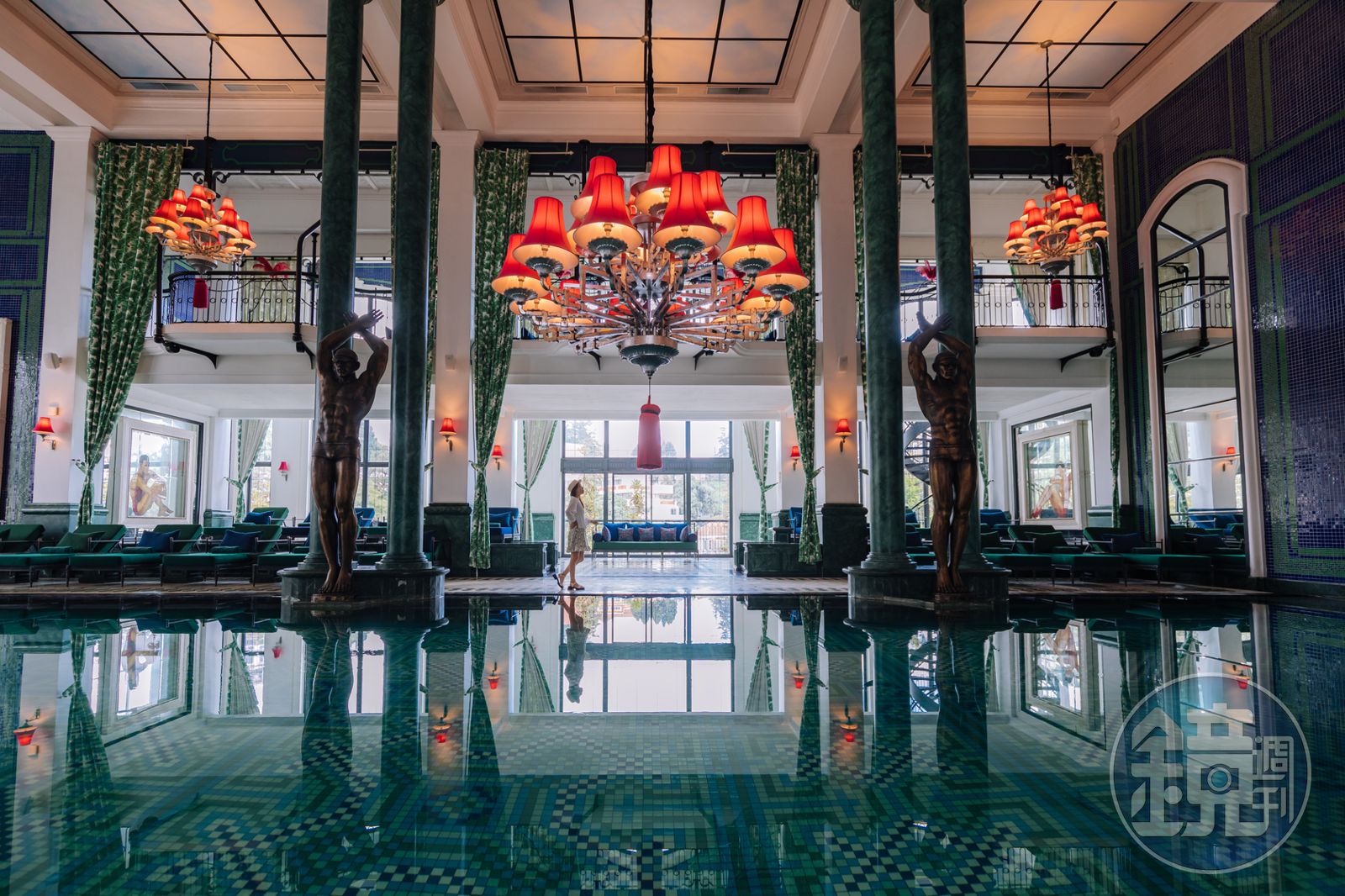 走進大廳門堂,由老舊行李箱與紳士帽堆疊,演繹當年旅人熙來攘往的景象映入眼簾。整體色澤及裝飾元素來自法屬印度支那時期,約莫20至30年代間王公貴族間流行的高級訂製時尚,還有Bill Bensley收藏來自世界各地的上千件古董,一進門就感受到個性濃烈的設計風格。