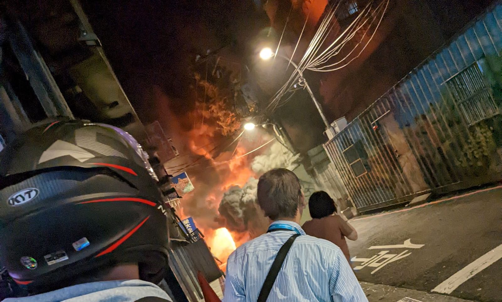 板橋區陽明街23巷昨深夜突然發生火警意外,起火地點為鐵皮屋,火勢迅速竄起。(翻攝自民生義消分隊臉書)發布時間:2023.10.17 07:56 臺北時間