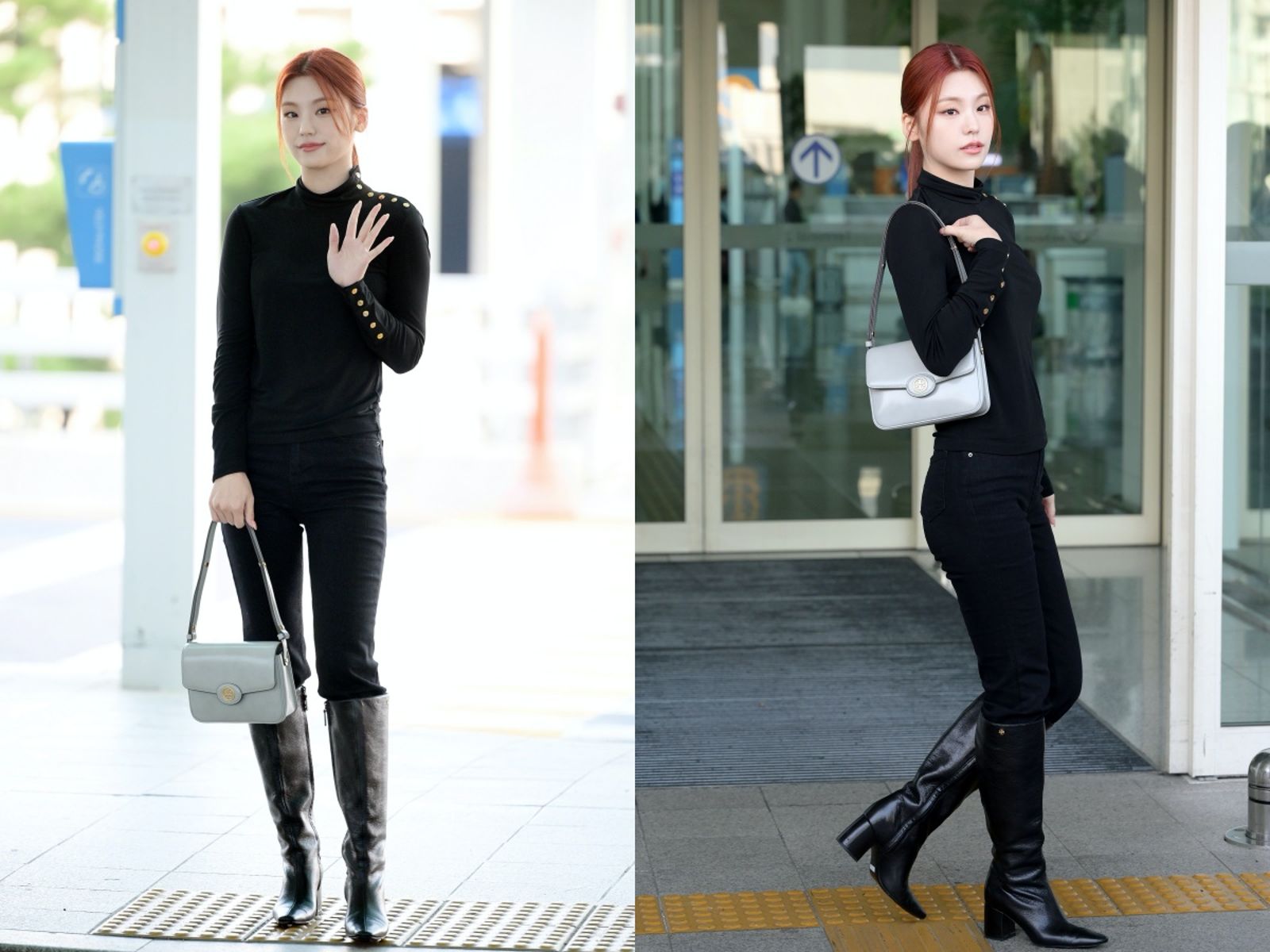 韓團ITZY隊長Yeji下午抵台 粉絲快到TORY BURCH見偶像 Yeji身著TORY BURCH 2023秋冬鈕扣裝飾針織衫、高筒香蕉靴,搭配淺花岩色Robinson兩用肩背包,亮麗現身仁川機場。(TORY BURCH提供) 發布時間:2023.10.18 14:00 臺北時間