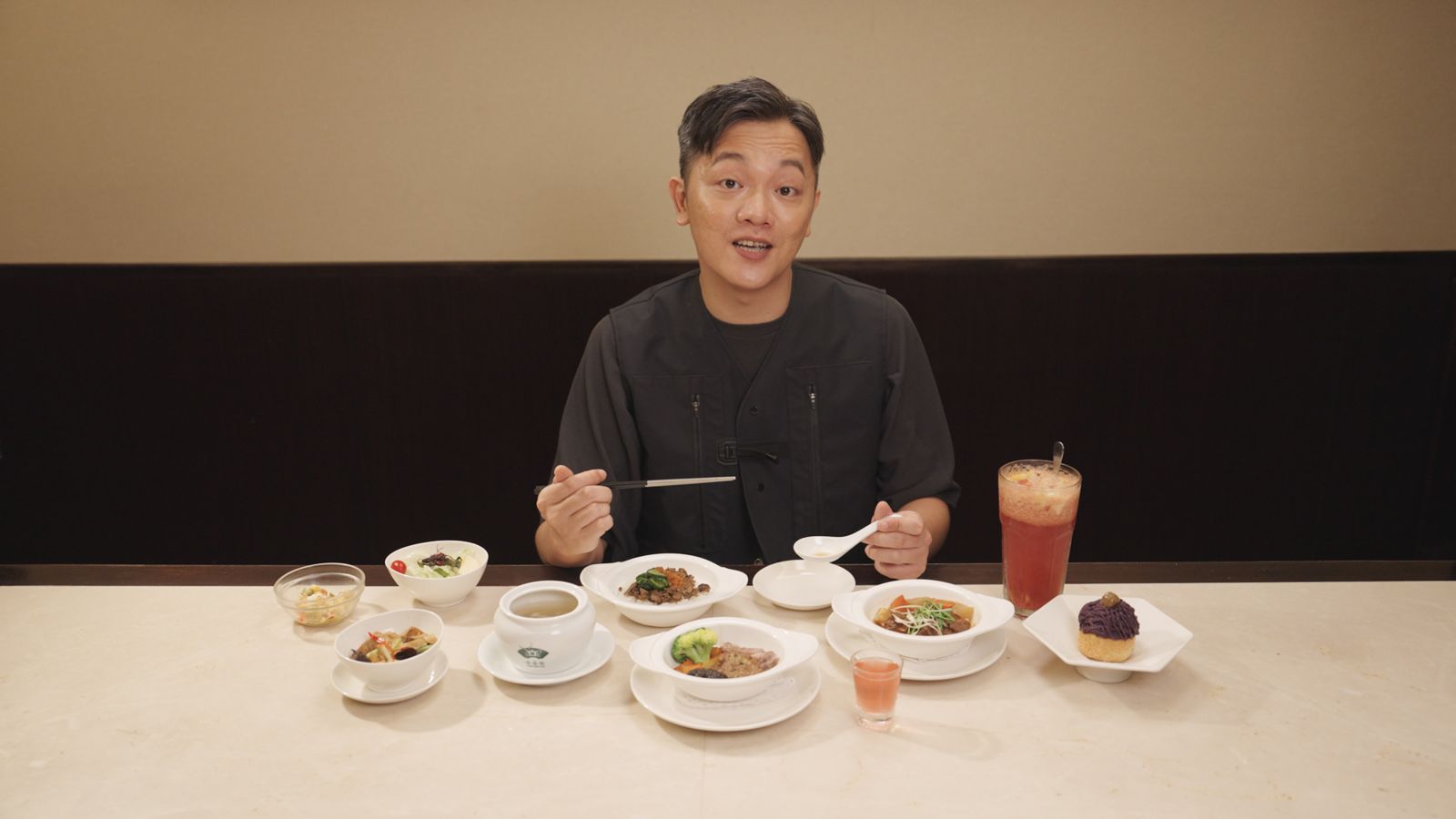 如果說「913椒香燉牛腩套膳」可滿足對辣淺嘗則止的饕客的胃,那麼天仁喫茶趣此次推出的「包種素排海參套膳」就是吃素者的福氣了!主菜中包含了以植物肉、馬蹄、芹菜做成的素排,口感鮮美,不含五辛。只見Soac夾起素排咀嚼,滿足地道:「它咬起來非常清香有層次。主廚揉合新鮮食材和植物肉加以塑形,根本就是手路菜的等級!」